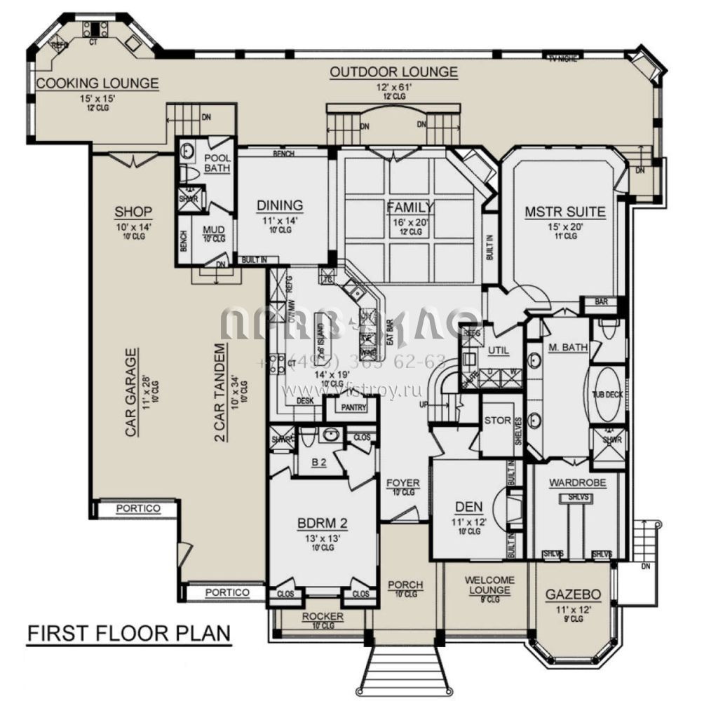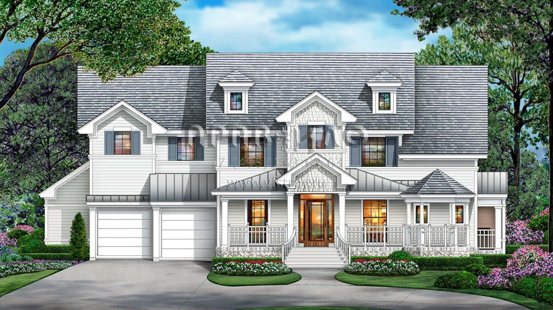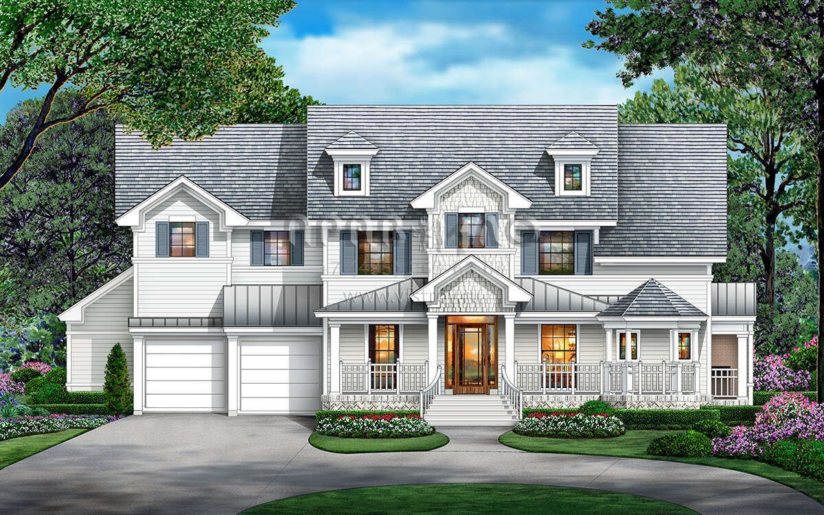 Проект двухэтажного дома с гаражом на три и более машин в стиле Ранчо S5-409 (5445-00506)