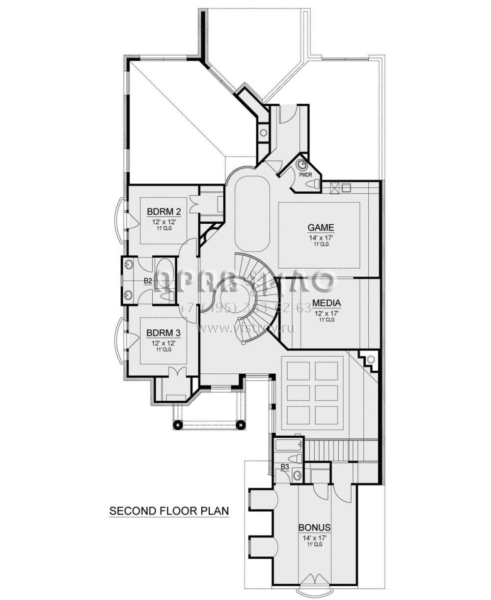 Поскольку этот проект разрабатывался иностранными архитекторами, для строительства дома требуется переработка проекта под действующие в России нормы. Данные визуализации проекта представлены для ознакомления с концепцией проекта. Проект разработан американским архитектурным бюро и представлен America's Best House Plans.