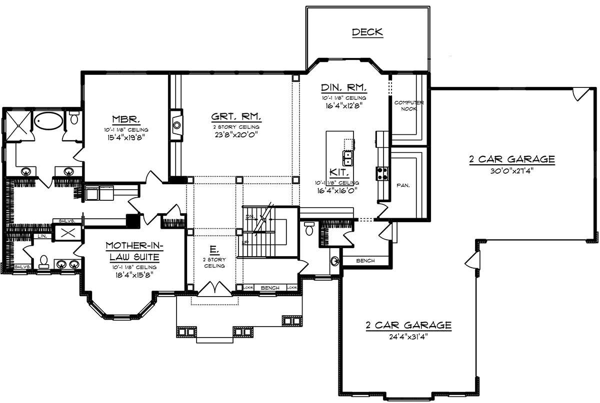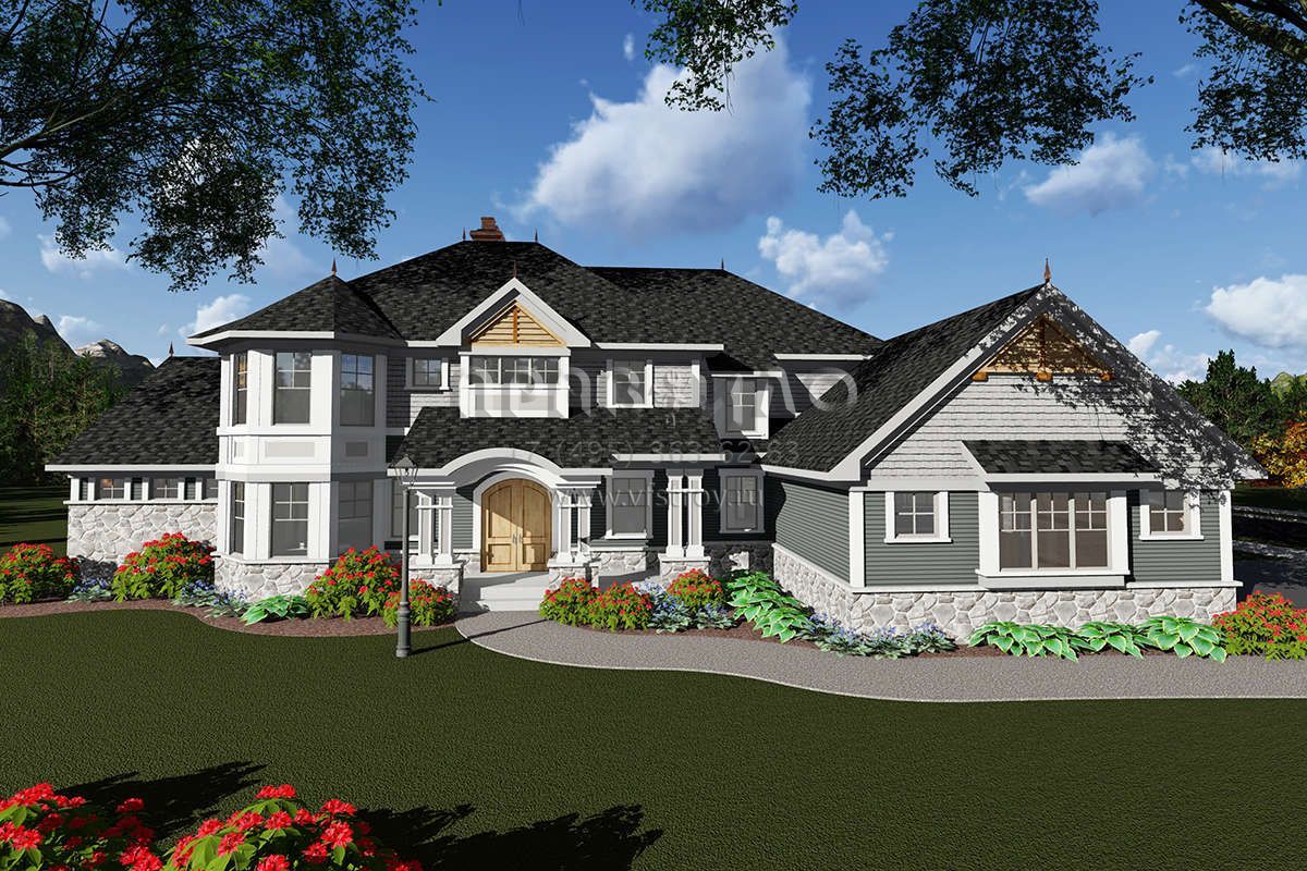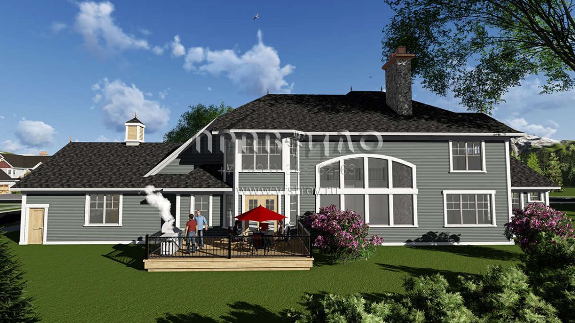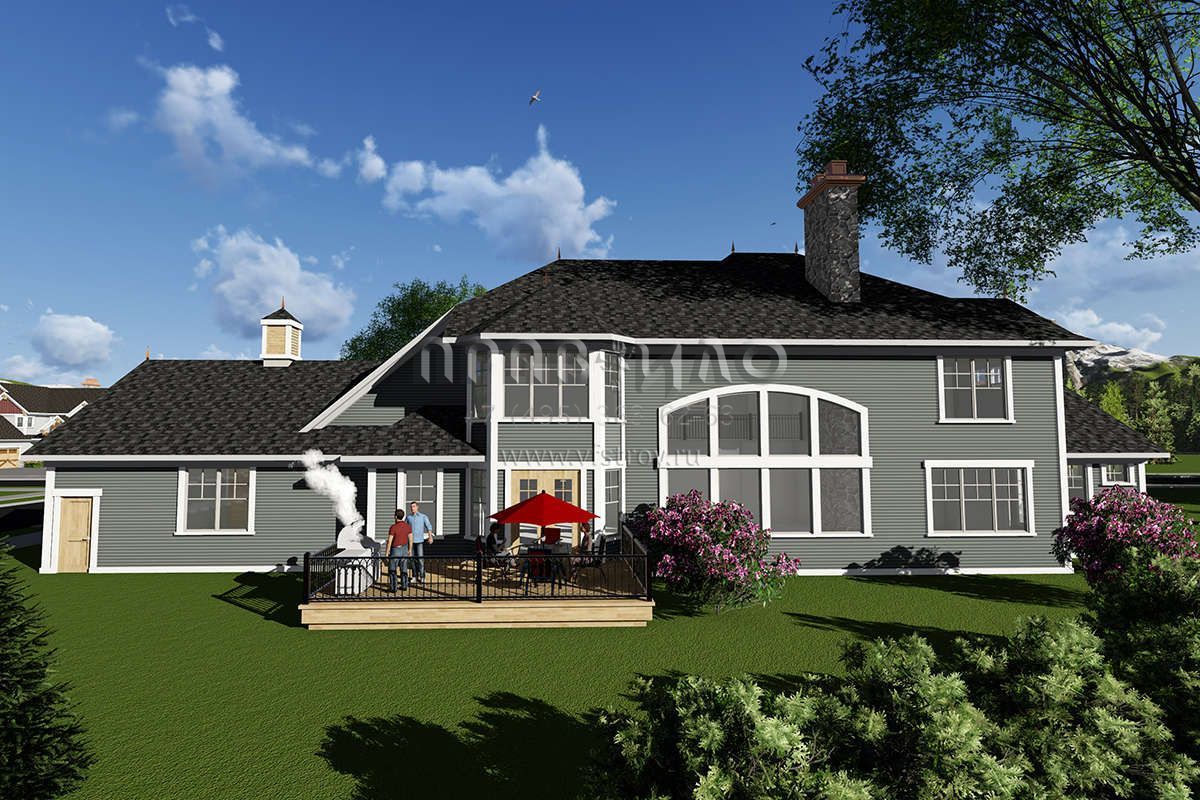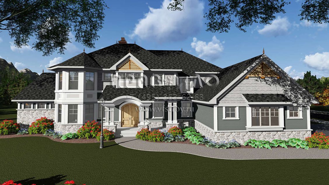 Проект двухэтажного дома с гаражом на три и более машин в стиле Ранчо S5-412 (1020-00084)
