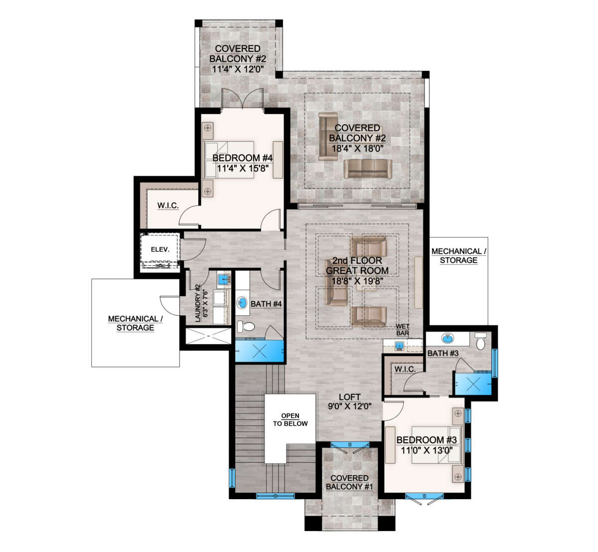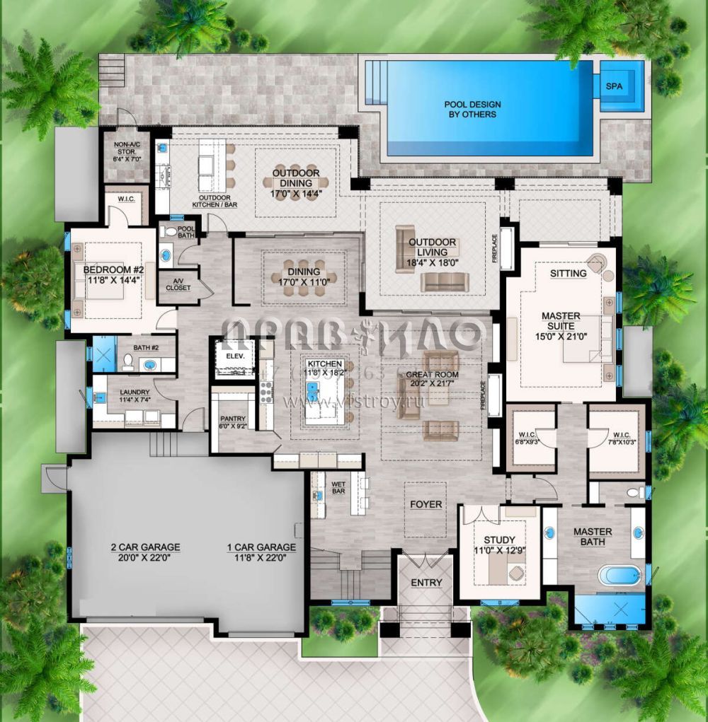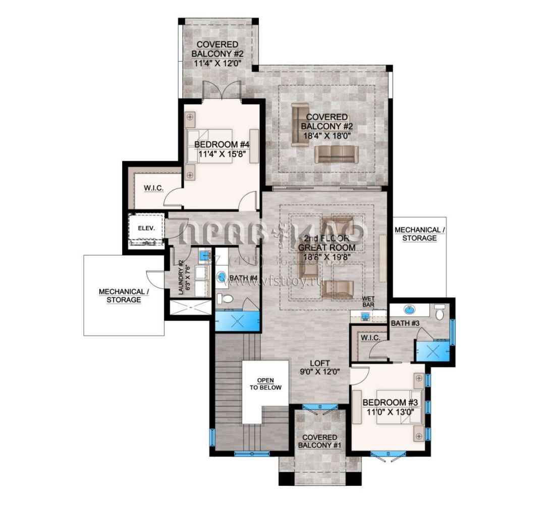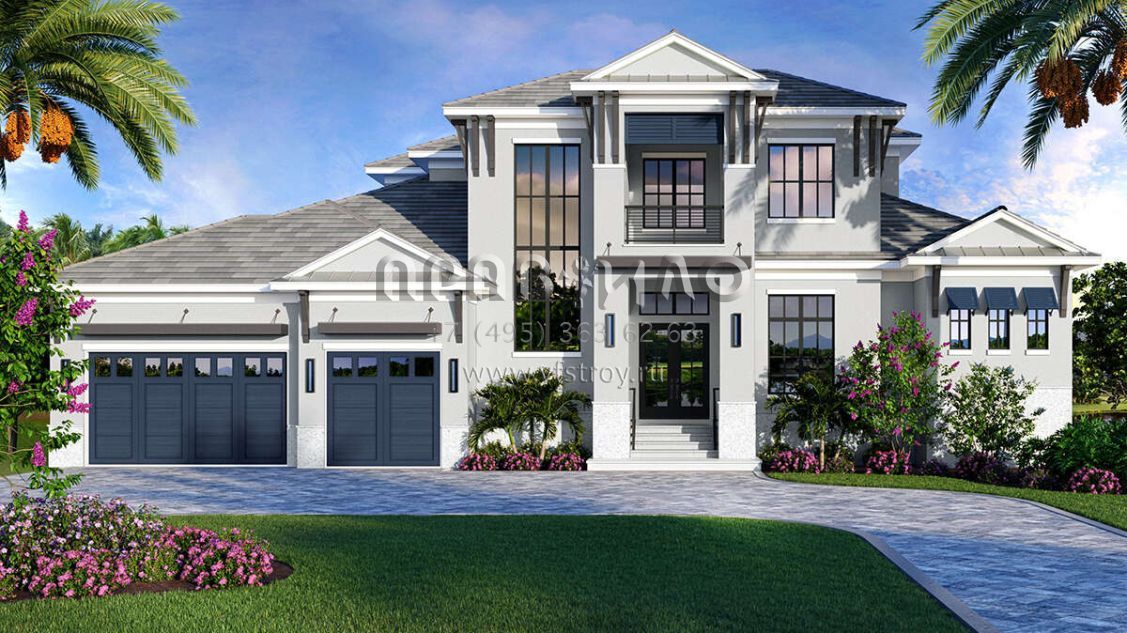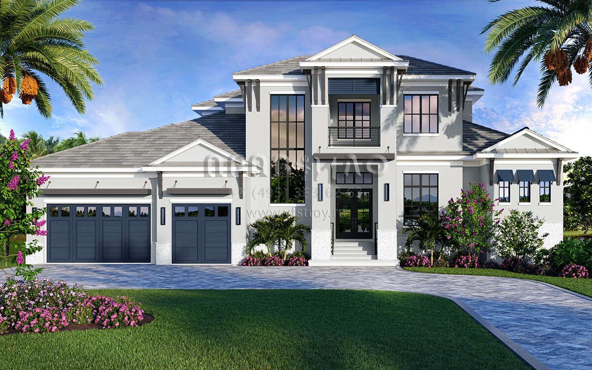 Проект двухэтажного дома с гаражом на три и более машин в прибрежном стиле S5-412 (207-00111)