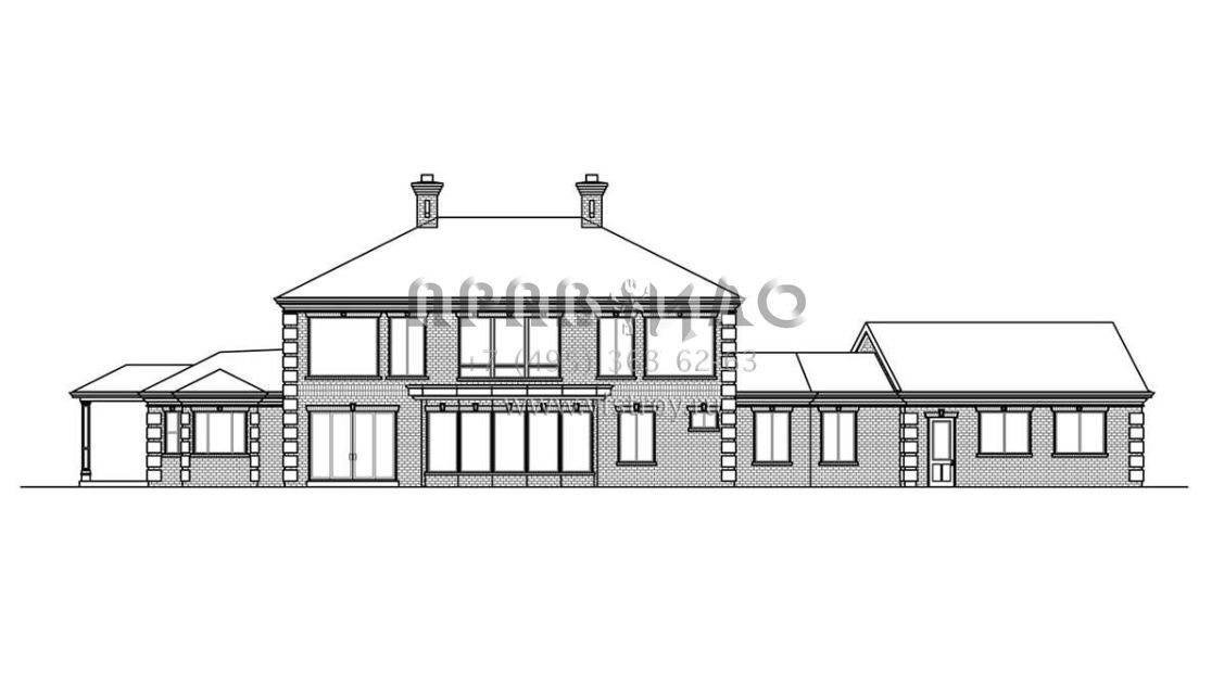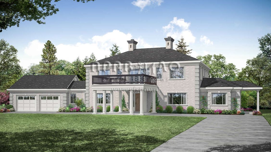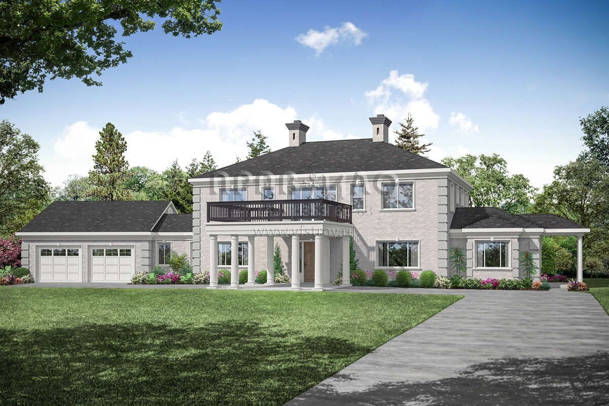 Проект двухэтажного дома с гаражом на две машины в стиле Ранчо S5-413 (035-00933)