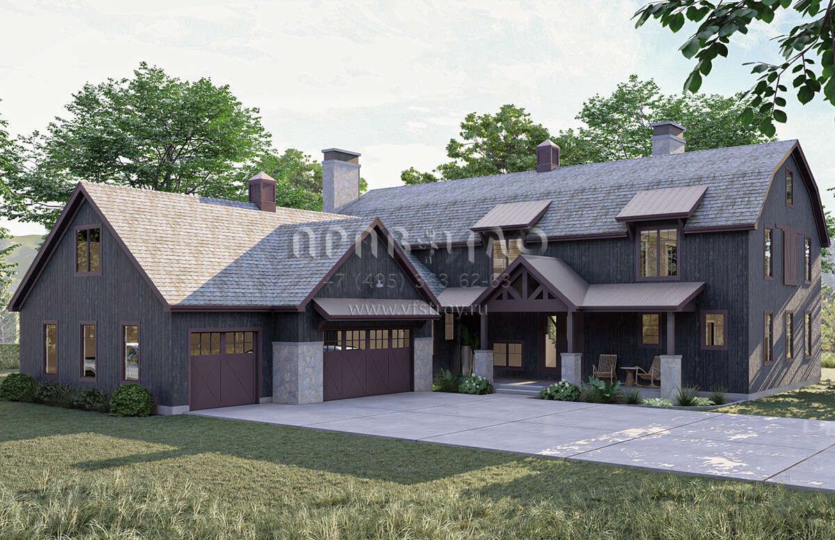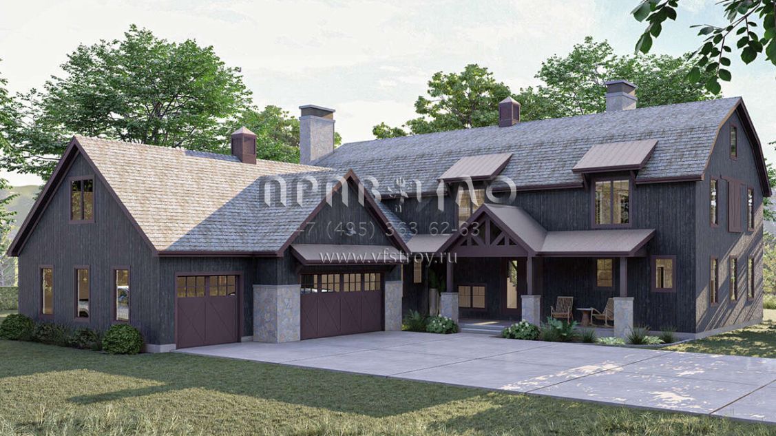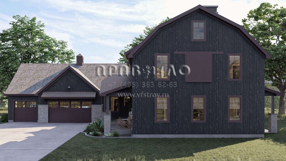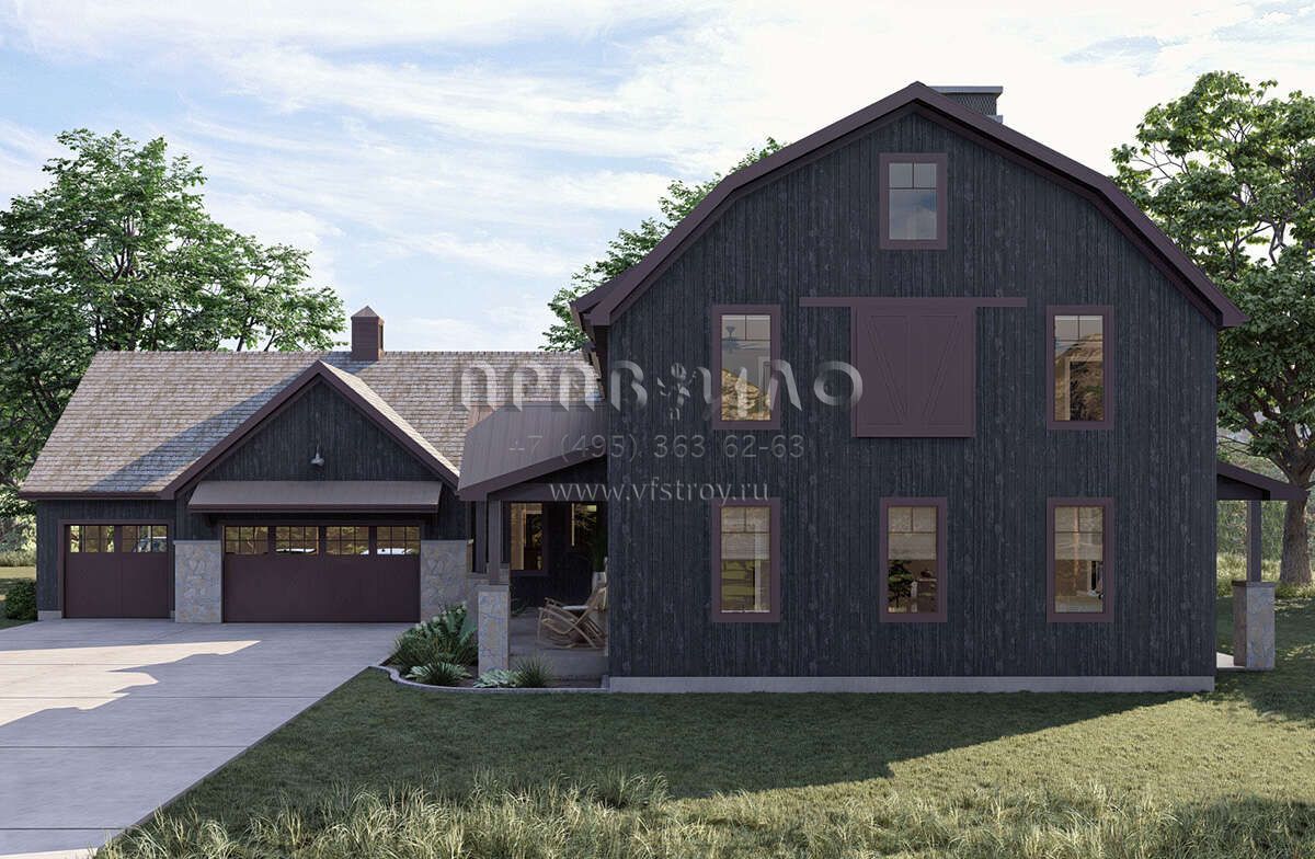 Проект двухэтажного дома с гаражом на три и более машин в стиле БарнХаус S5-413 (963-00652)