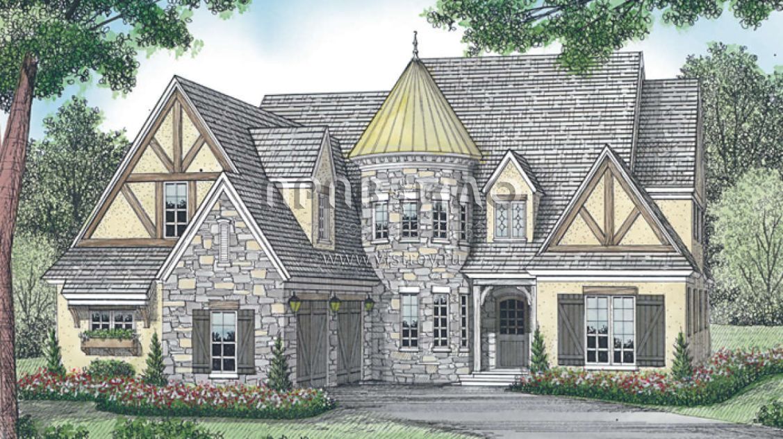 Проект двухэтажного дома с гаражом на две машины в стиле Готика S5-414 (3323-00454)
