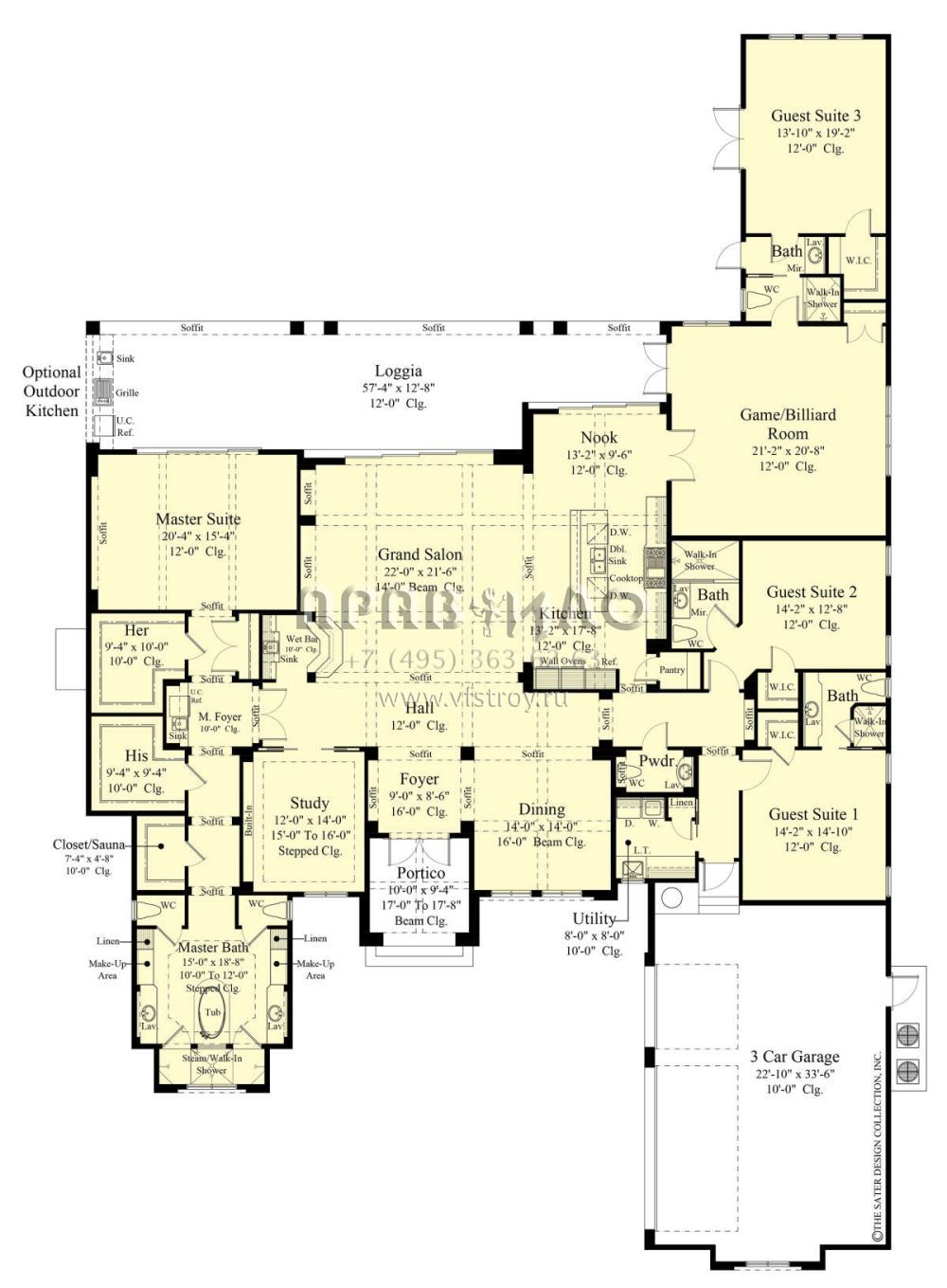 Проект одноэтажного дома с гаражом на три и более машин в современном стиле S5-414 (8436-00082)