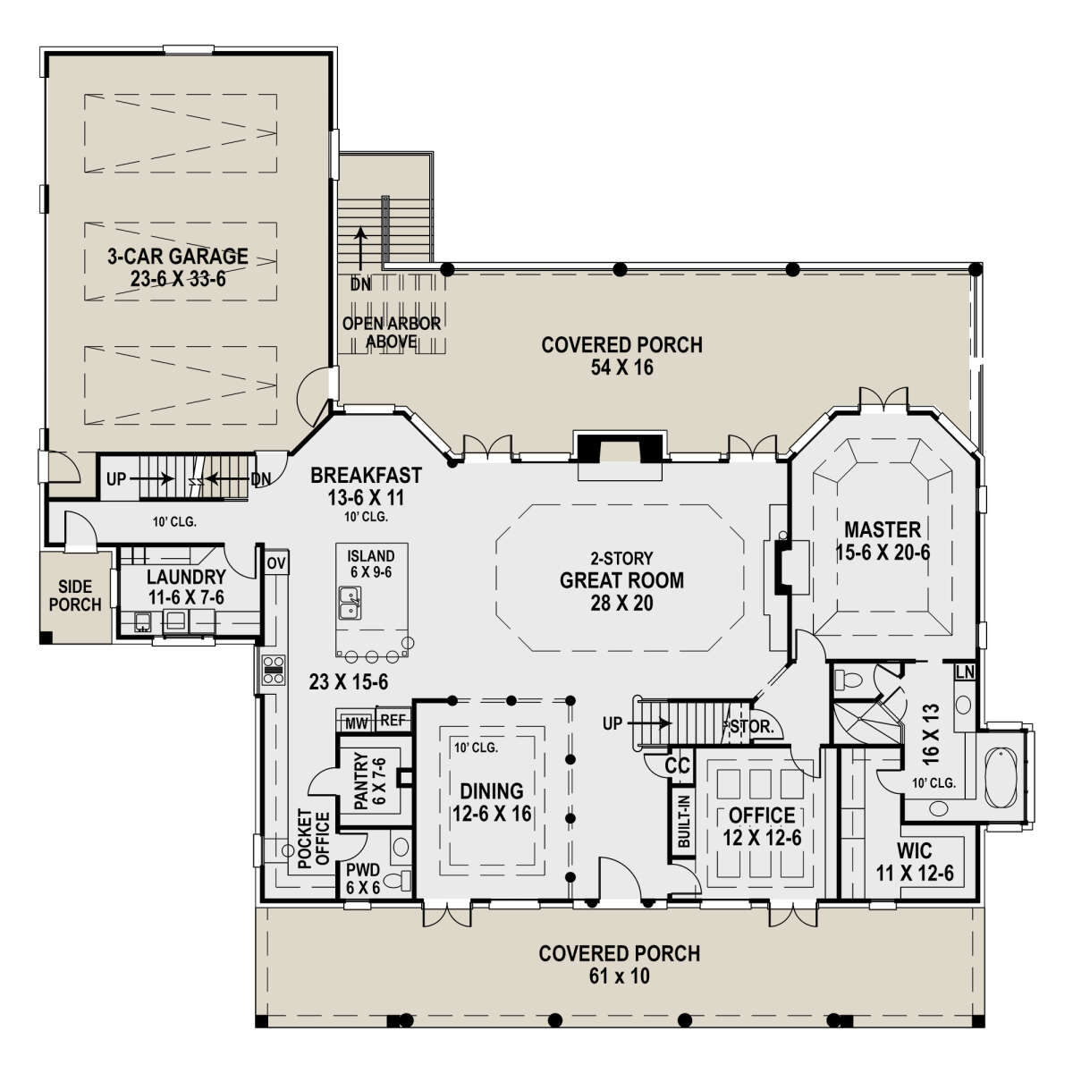 Проект двухэтажного дома с гаражом на три и более машин в стиле Ранчо S5-415 (4195-00035)