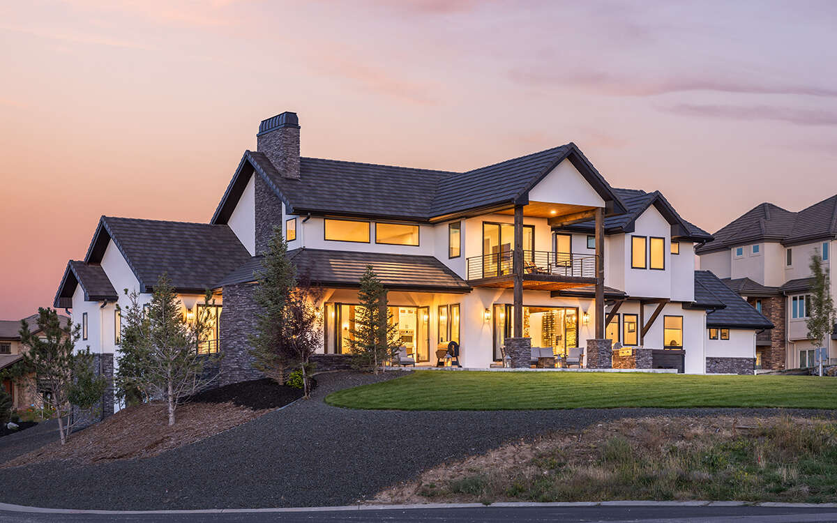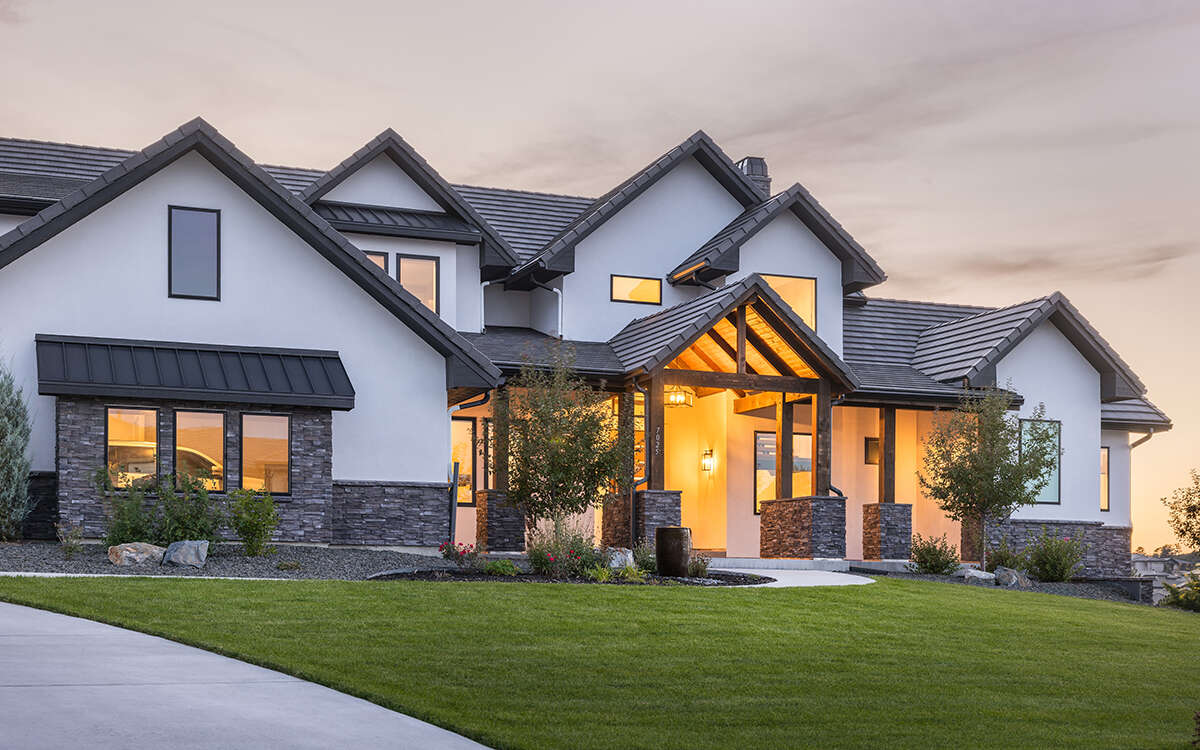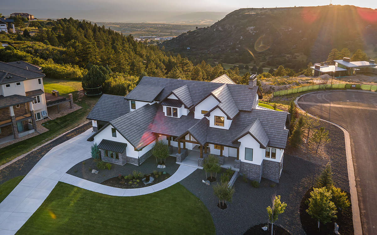 Это проект двухэтажного дома с гаражом на три и более машин жилой площадью 415 кв.м. Длина дома 25 м, ширина 32.9 м, высота 8.8 м. В доме шесть и более спален и пять санузлов.