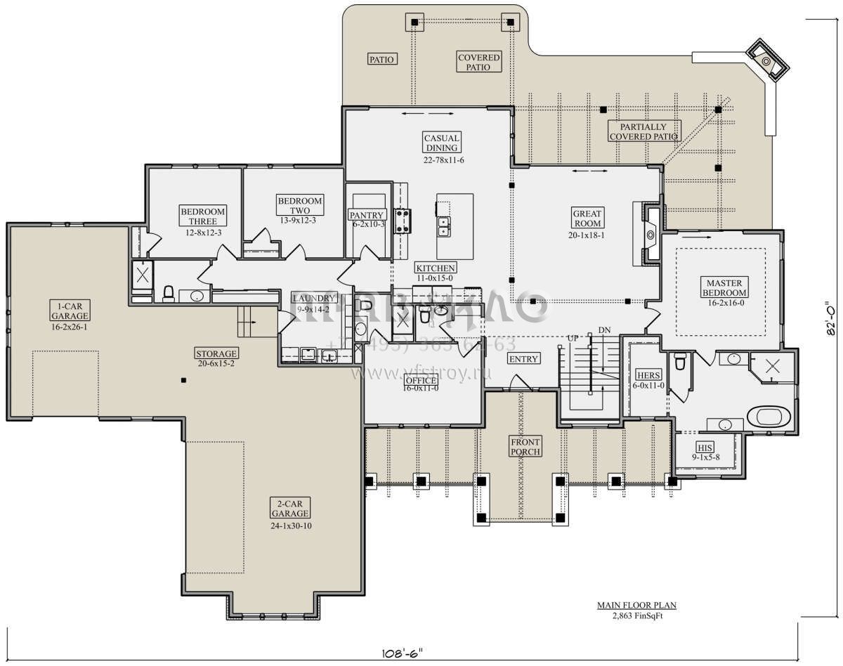 Поскольку этот проект разрабатывался иностранными архитекторами, для строительства дома требуется переработка проекта под действующие в России нормы. Данные визуализации проекта представлены для ознакомления с концепцией проекта. Проект разработан американским архитектурным бюро и представлен America's Best House Plans.