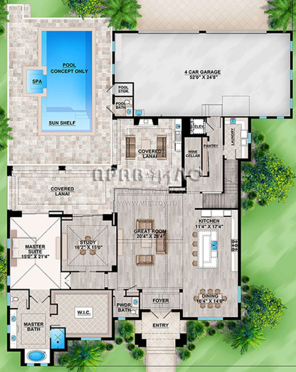 Проект двухэтажного дома с гаражом на три и более машин в современном стиле S5-417 (207-00041)