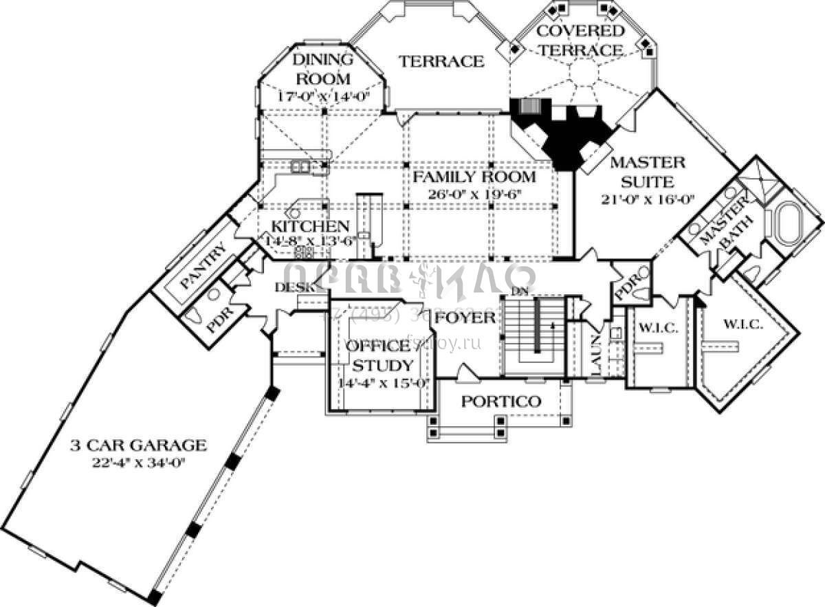 Проект одноэтажного дома с гаражом на три и более машин в американском стиле S5-417 (3323-00461)