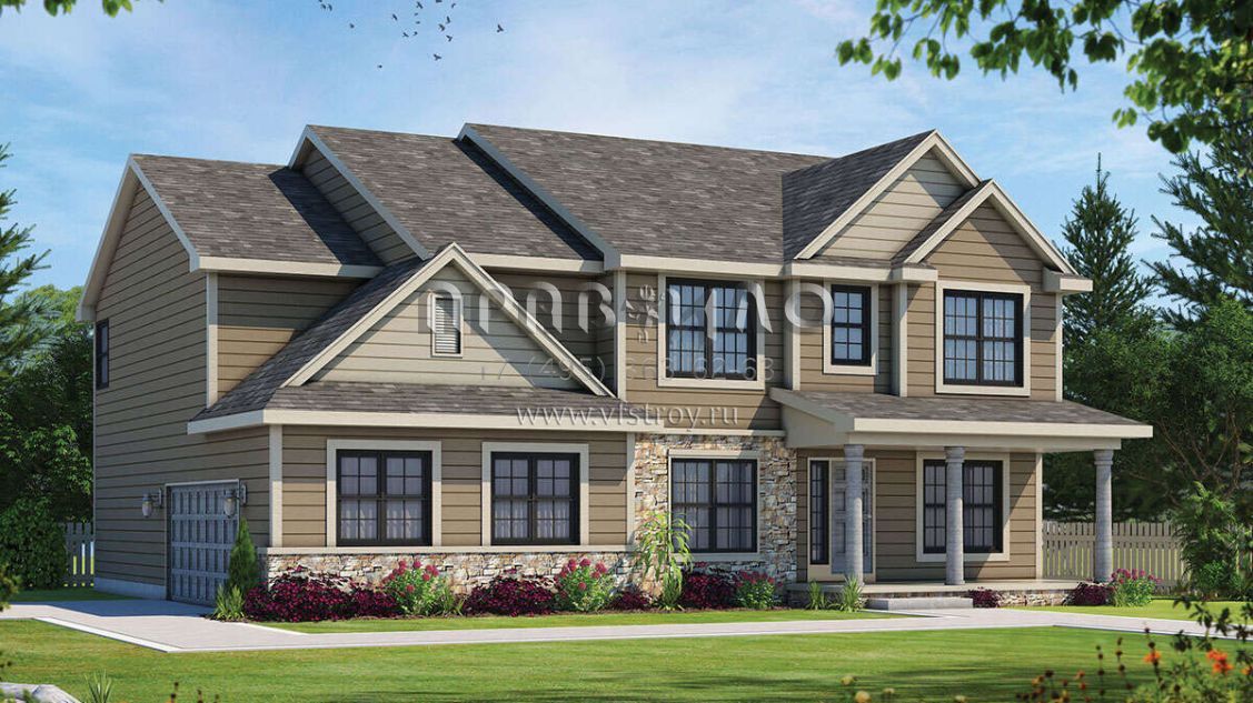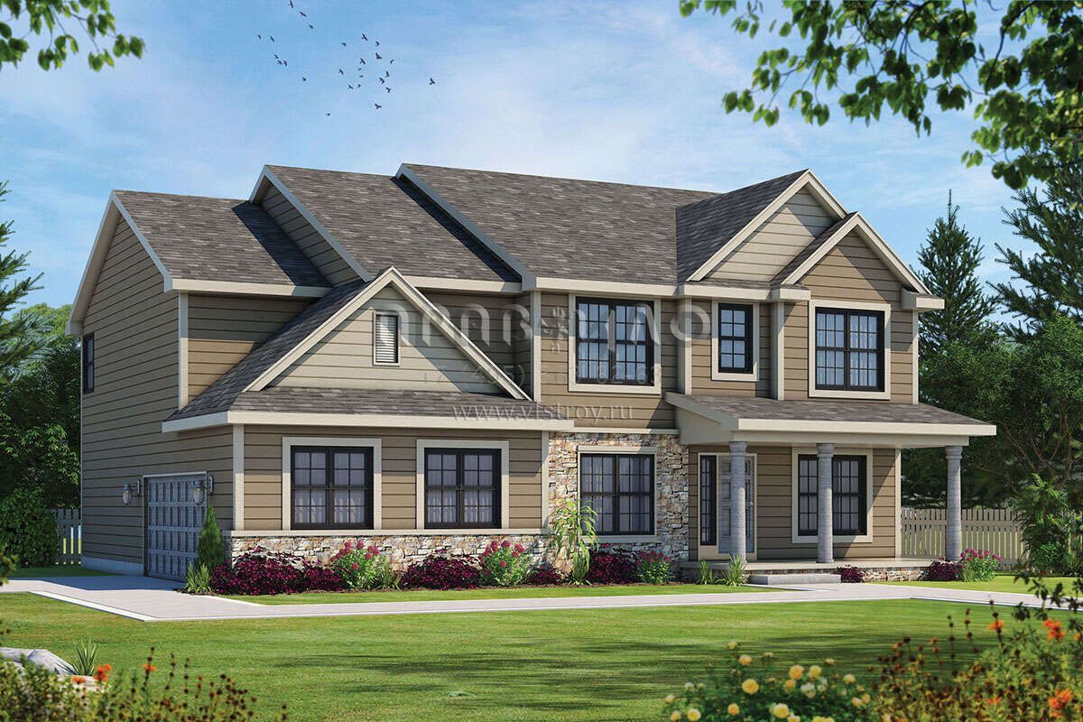 Проект двухэтажного дома с гаражом на две машины в стиле Ранчо S5-418 (402-01750)