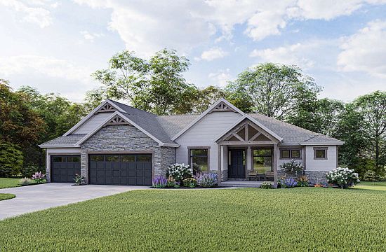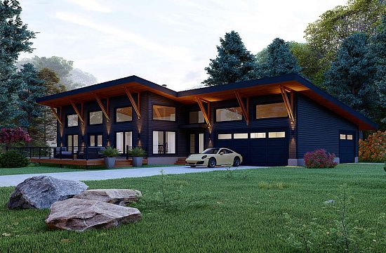 Проект двухэтажного дома с гаражом на три и более машин в стиле Ранчо S5-418 (699-00004)