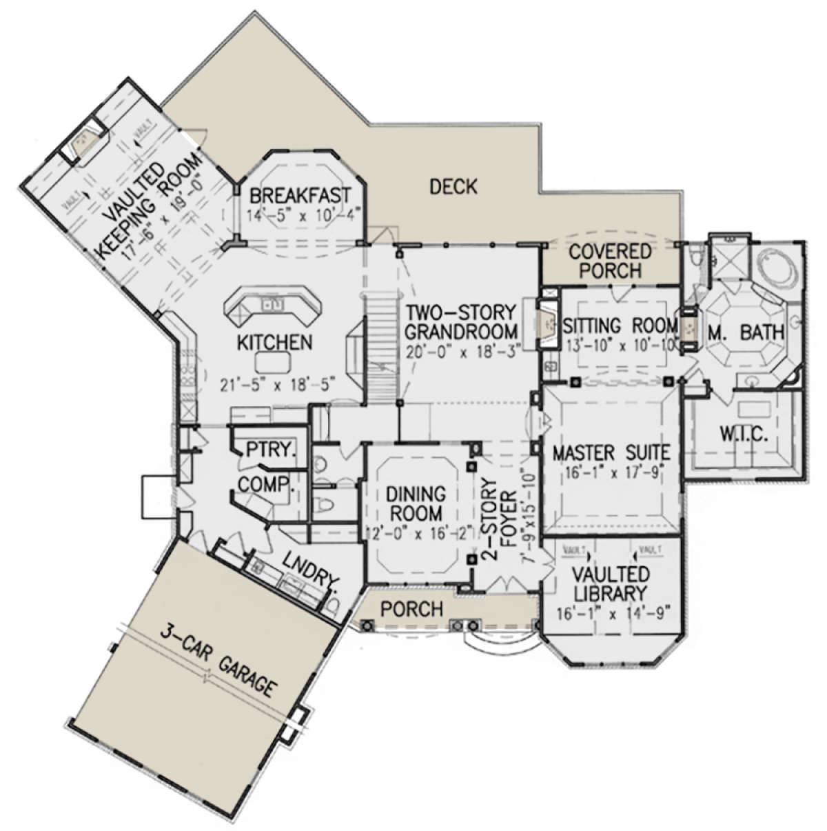 Проект двухэтажного дома с гаражом на три и более машин в стиле Ранчо S5-418 (699-00190)