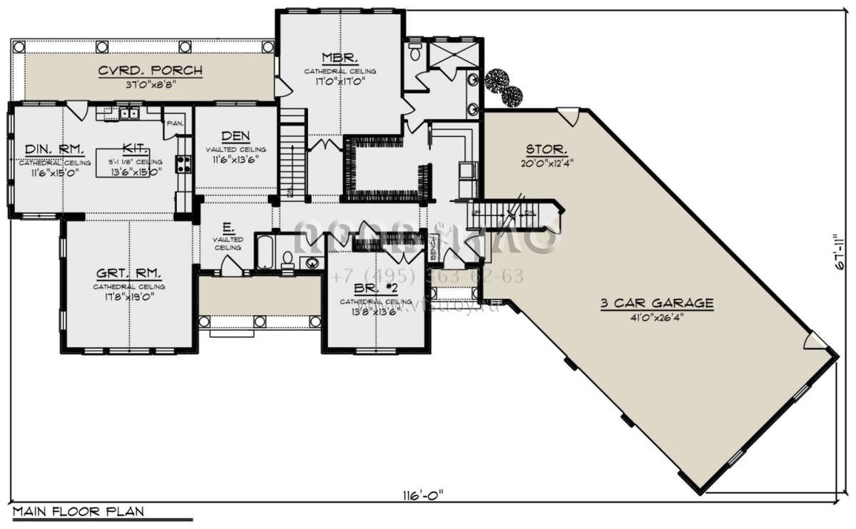 S5-420 (1020-00360) Это иностранный проект, для которого требуется адаптация под нормы, действующие в Российской Федерации. Вы видите проект дома в стиле Ранчо. В этом доме сочетаются черты сельской постройки и аскетичность лофта. Внутри жильцы смогут проводить время с максимальным комфортом. Обратим внимание, что сейчас на планировках все размеры представлены в футах. Для перевода в метры вам необходимо значение в футах умножить на 0,3048.