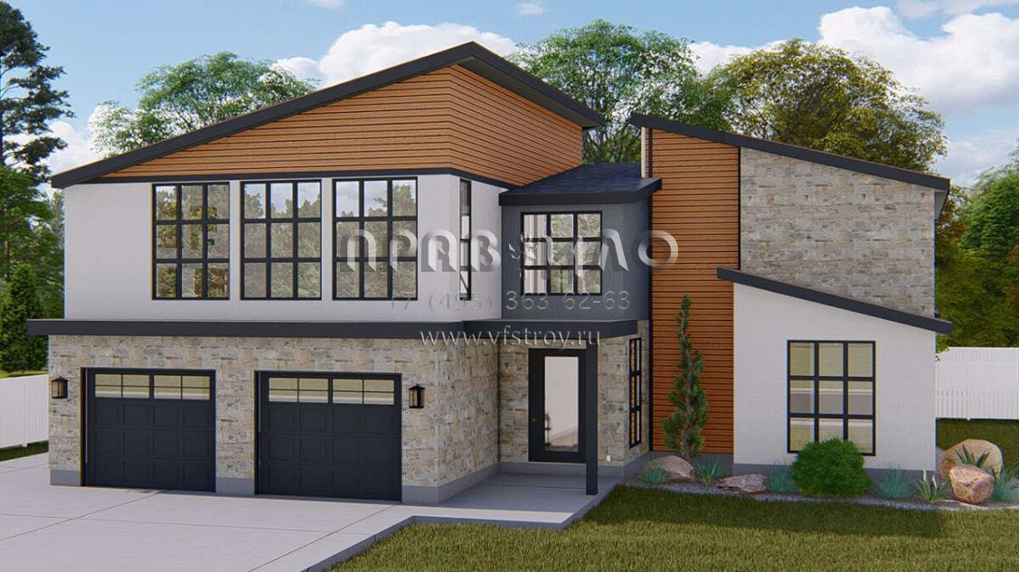Проект двухэтажного дома с гаражом на две машины в современном стиле S5-422 (2802-00145)