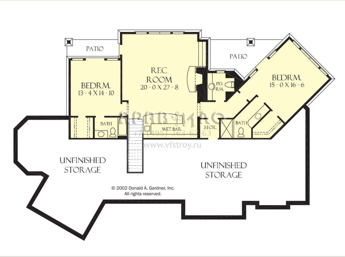 S5-422 (2865-00405) Это иностранный проект, для которого требуется адаптация под нормы, действующие в Российской Федерации. Вы видите проект дома в стиле Шале. В этом доме сочетаются черты сельской постройки и аскетичность лофта. Внутри жильцы смогут проводить время с максимальным комфортом. Обратим внимание, что сейчас на планировках все размеры представлены в футах. Для перевода в метры вам необходимо значение в футах умножить на 0,3048.
