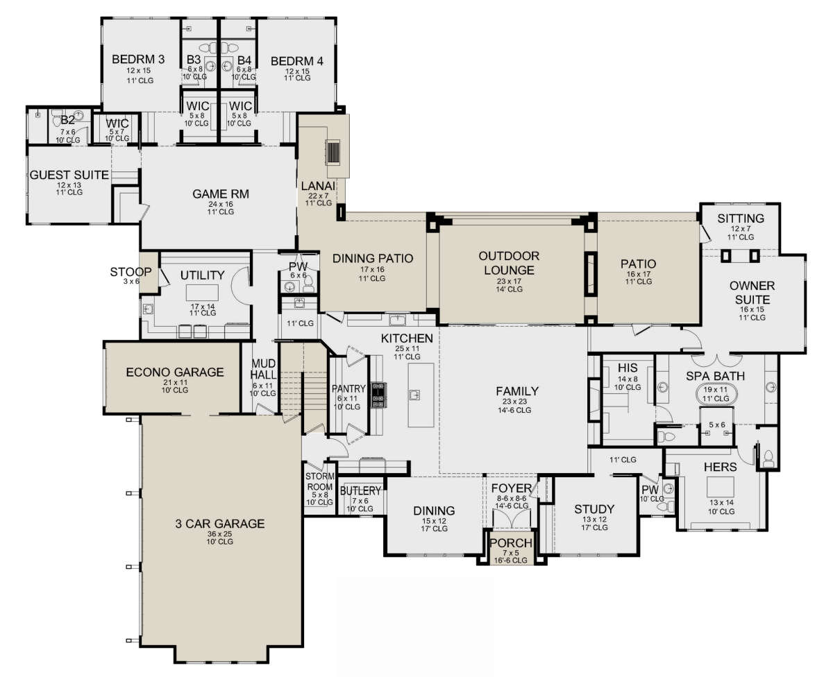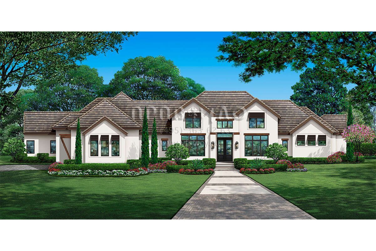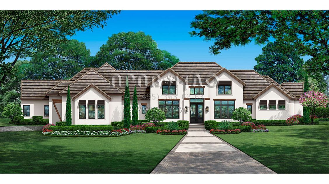 Проект одноэтажного дома с гаражом на три и более машин в английском стиле S5-422 (5445-00514)