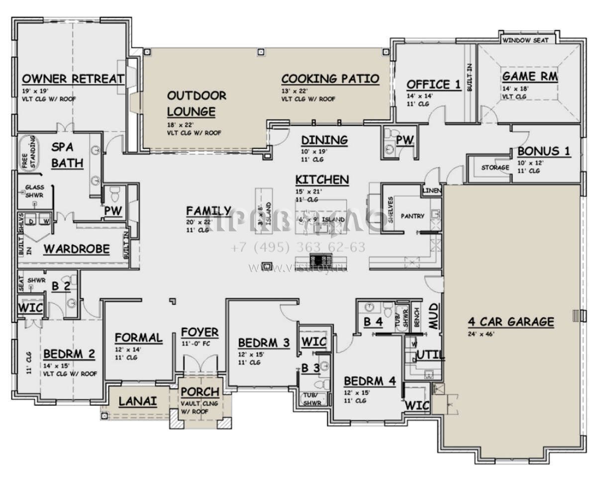 Проект одноэтажного дома с гаражом на три и более машин в современном стиле S5-423 (5445-00486)