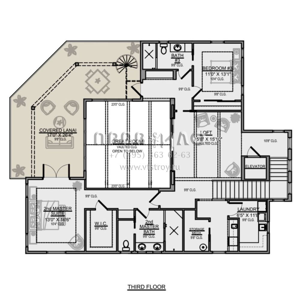 Поскольку этот проект разрабатывался иностранными архитекторами, для строительства дома требуется переработка проекта под действующие в России нормы. Данные визуализации проекта представлены для ознакомления с концепцией проекта. Проект разработан американским архитектурным бюро и представлен America's Best House Plans.