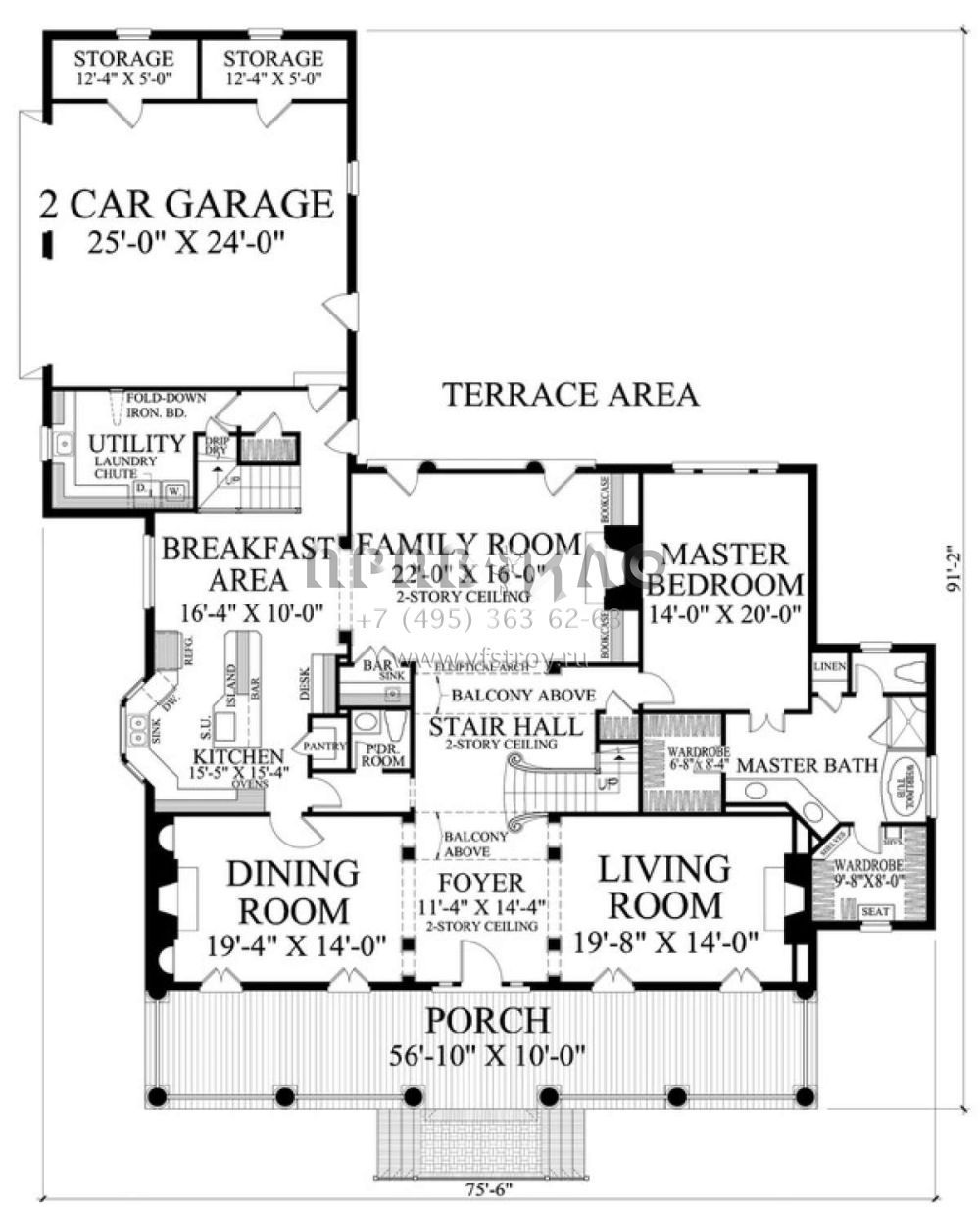 Проект двухэтажного дома с гаражом на две машины в стиле Ранчо S5-423 (7922-00129)