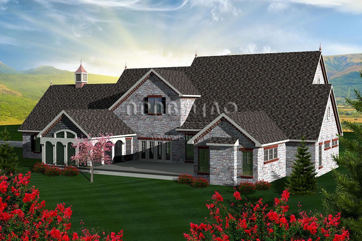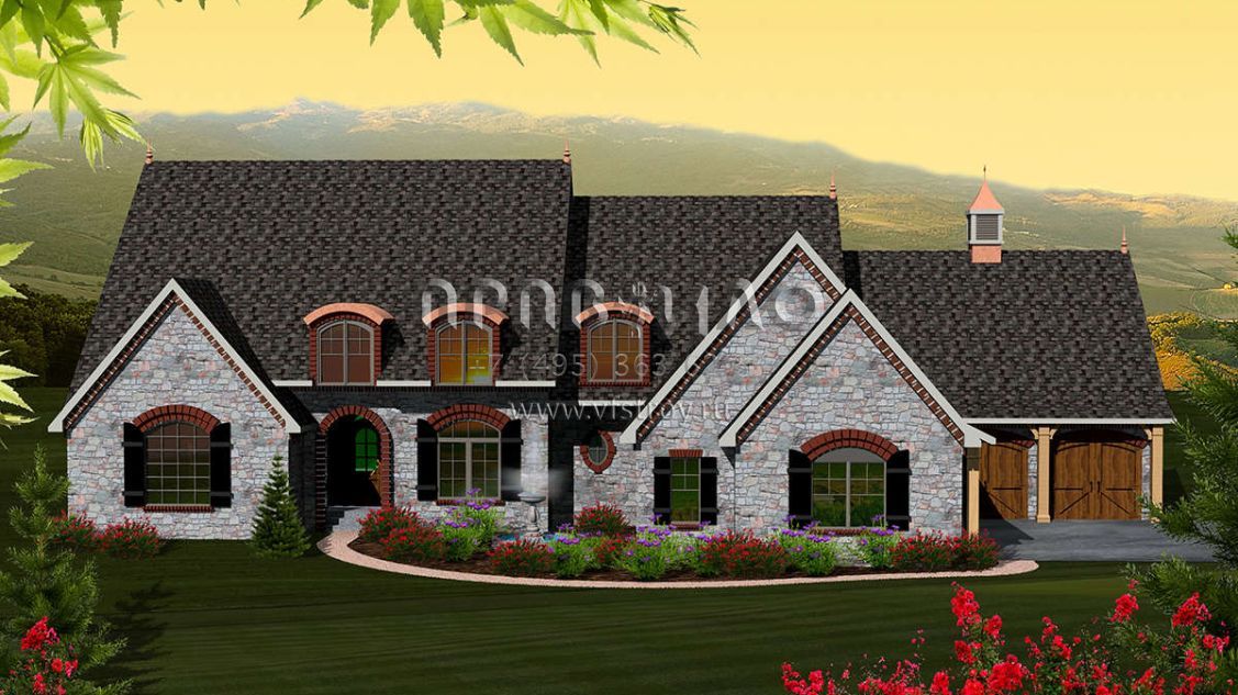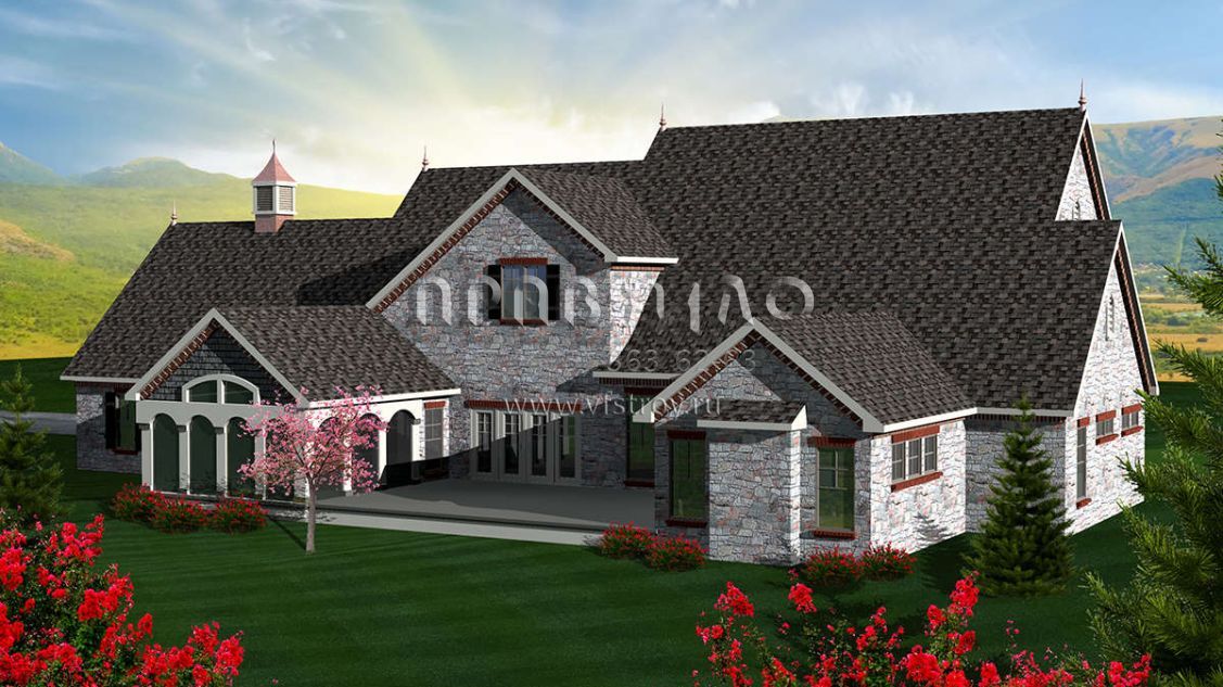 Проект двухэтажного дома с гаражом на три и более машин в английском стиле S5-424 (1020-00224)