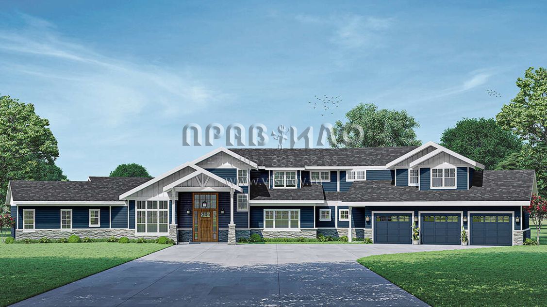 Проект двухэтажного дома с гаражом на три и более машин в американском стиле S5-425 (035-00992)