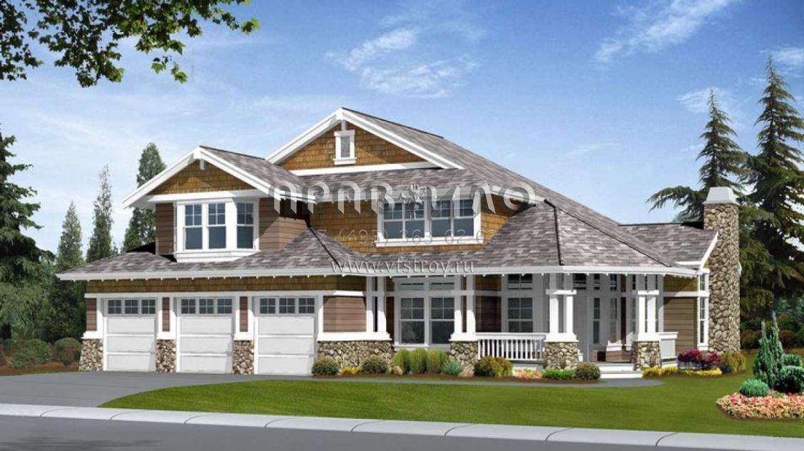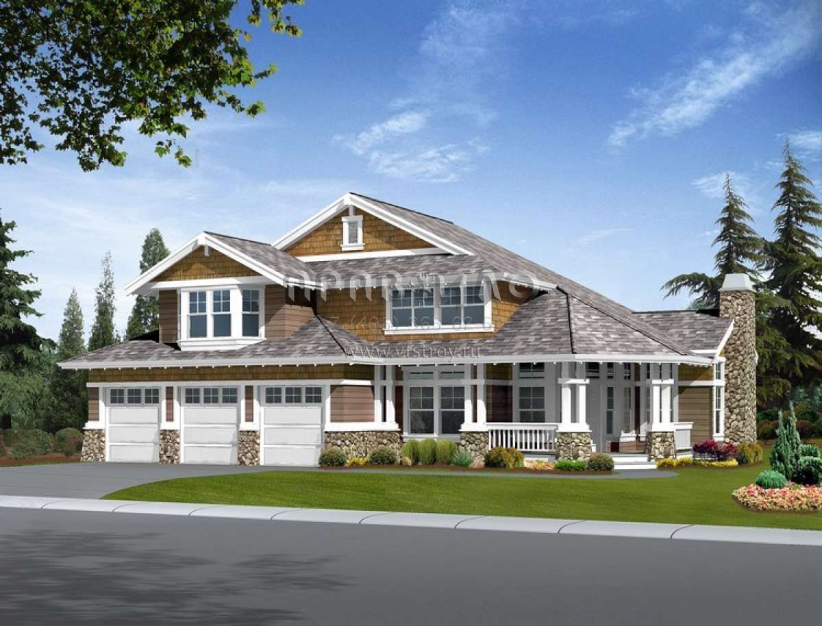 Проект двухэтажного дома с гаражом на три и более машин в американском стиле S5-425 (341-00226)