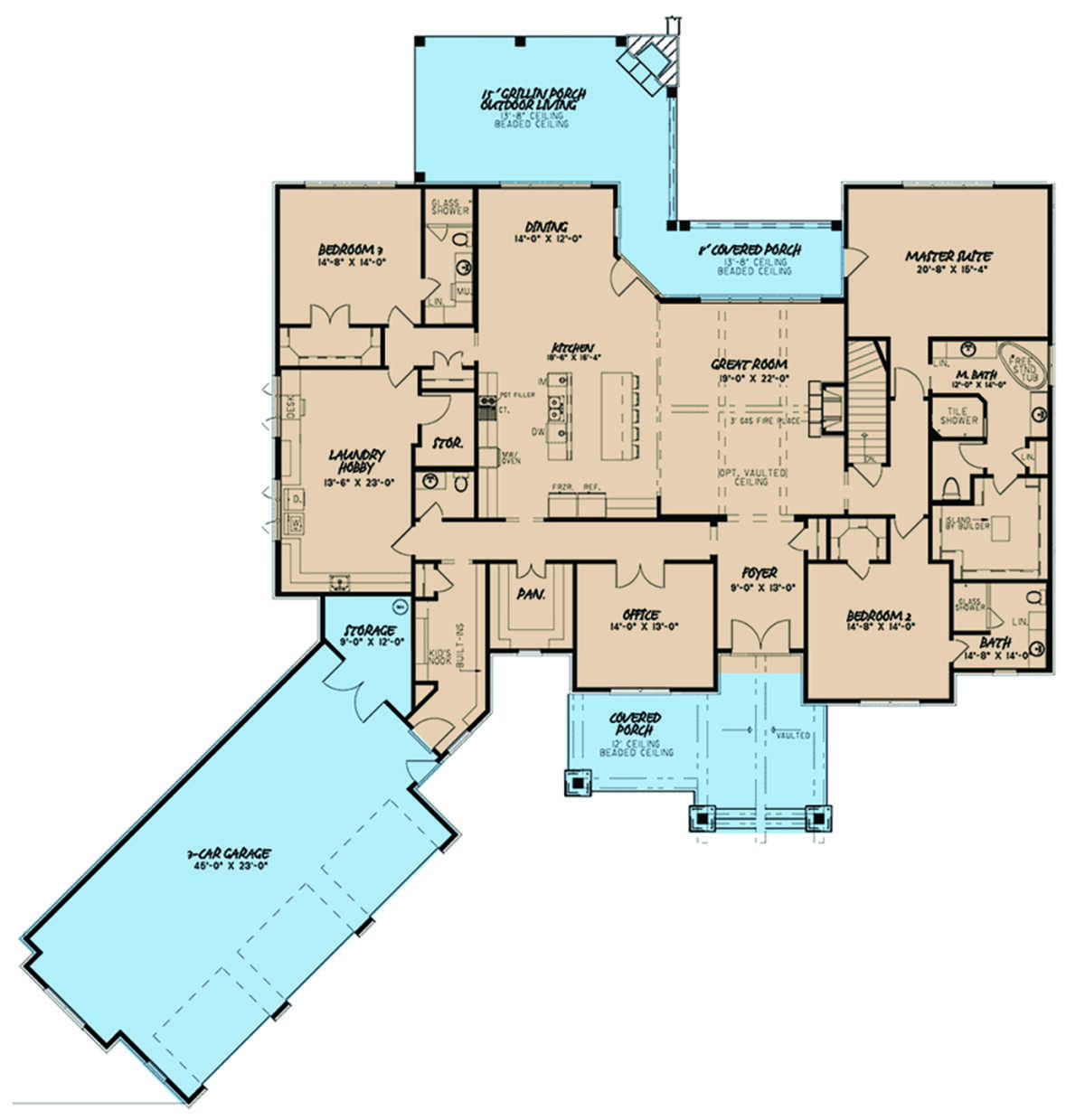Проект одноэтажного дома с гаражом на три и более машин в американском стиле S5-425 (8318-00176)