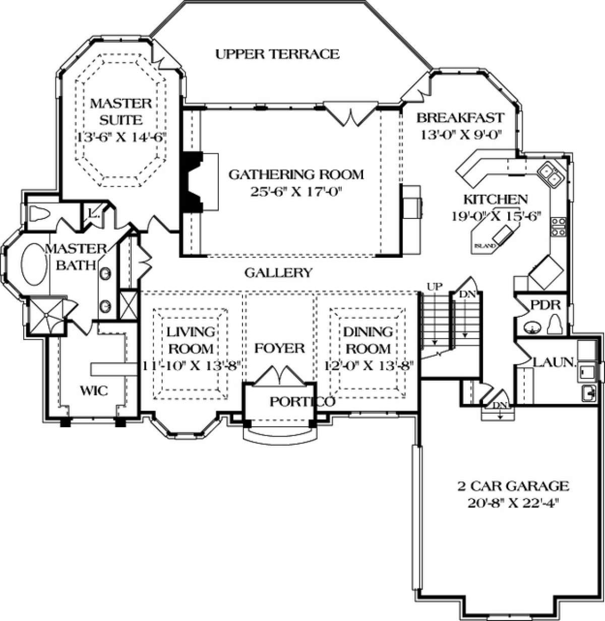 Это проект двухэтажного дома с гаражом на две машины жилой площадью 427 кв.м. Длина дома 21.6 м, ширина 21.3 м, высота 0 м. В доме четыре спальни и четыре санузла.
