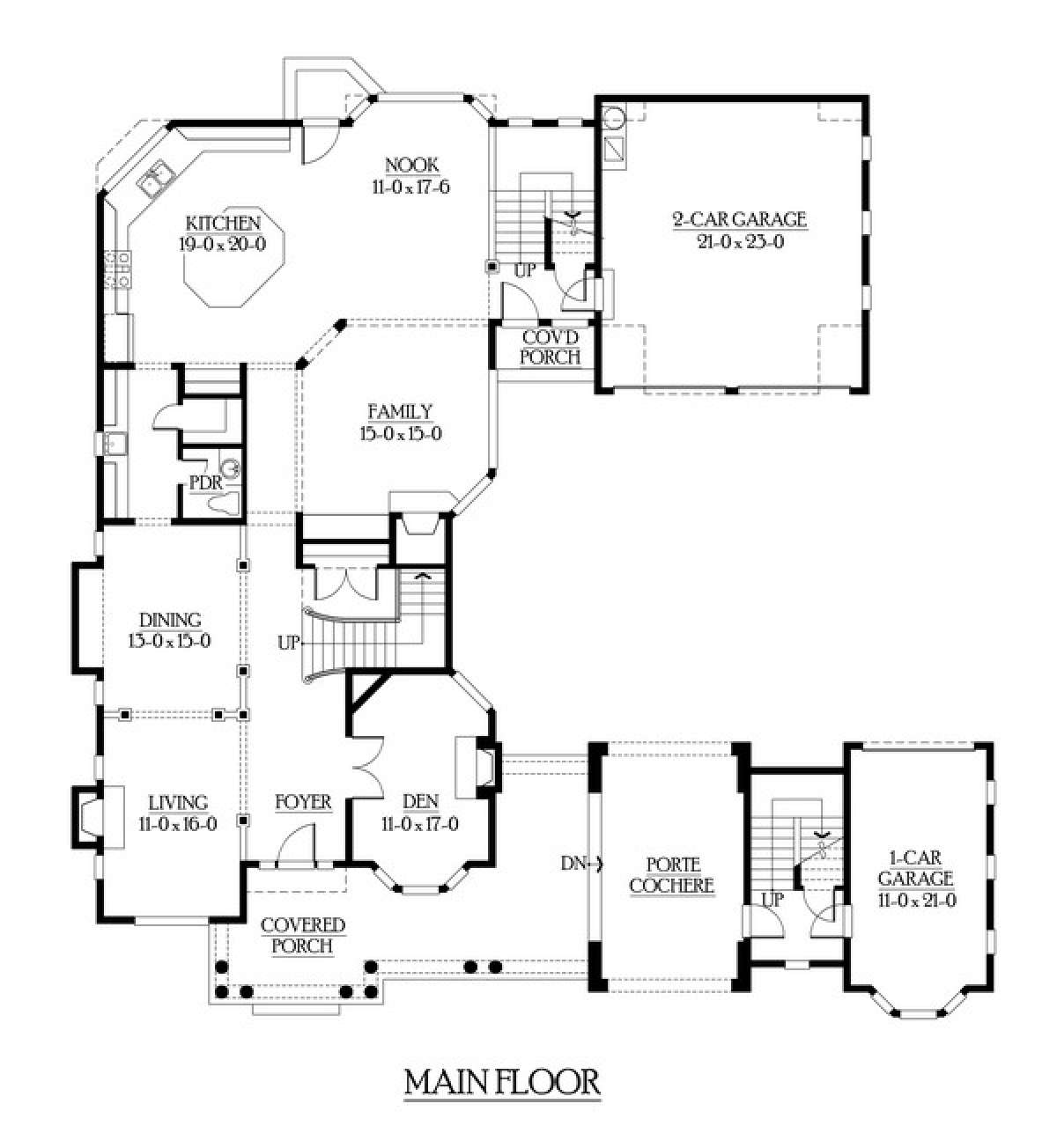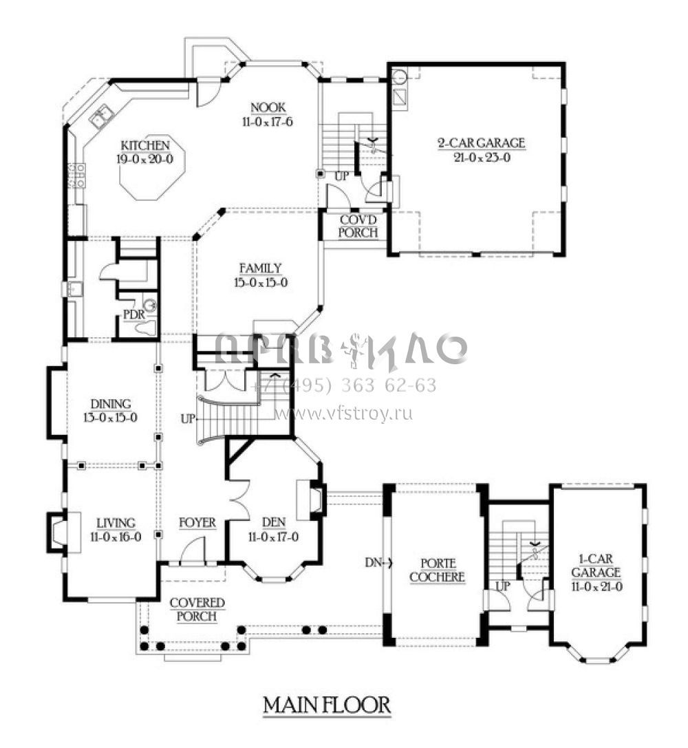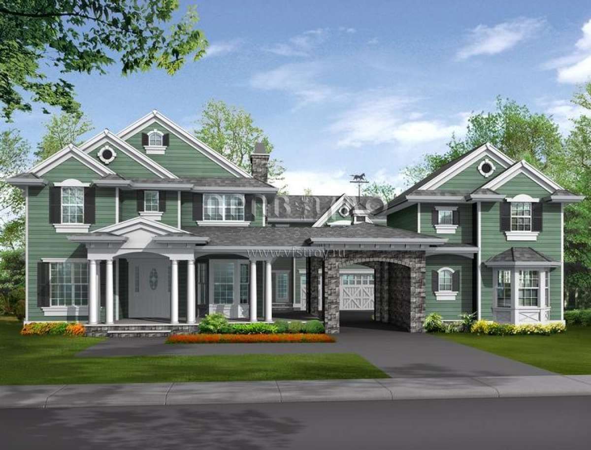 Проект двухэтажного дома с гаражом на три и более машин в стиле Ранчо S5-427 (341-00266)