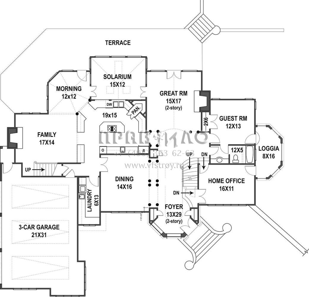 Проект двухэтажного дома с гаражом на три и более машин в английском стиле S5-427 (4195-00017)
