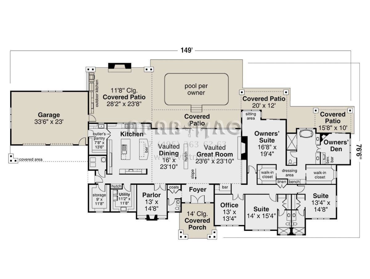 Проект одноэтажного дома с гаражом на две машины в современном стиле S5-428 (035-01067)