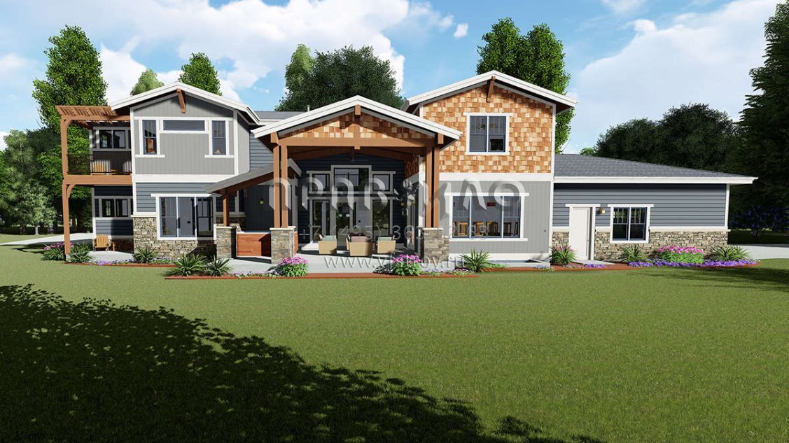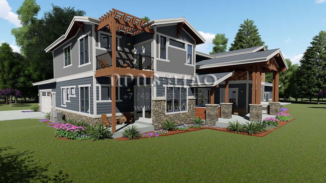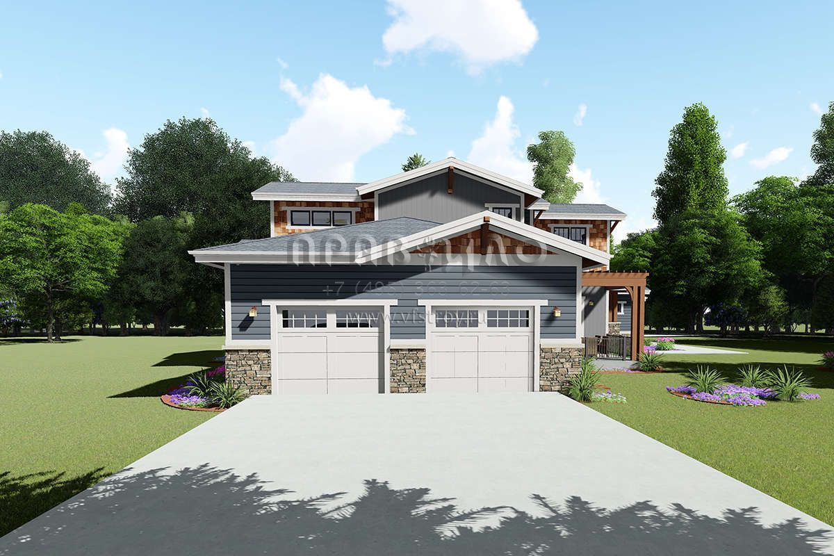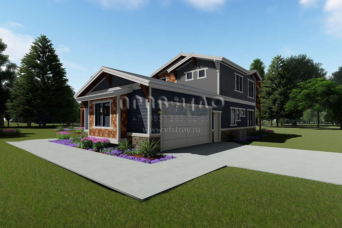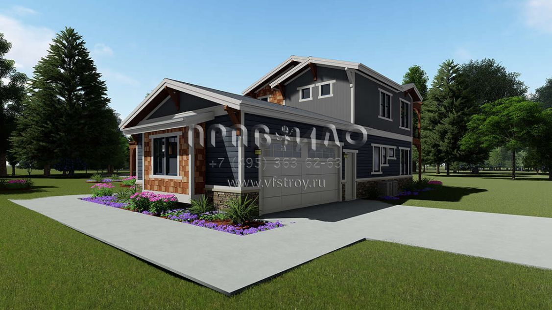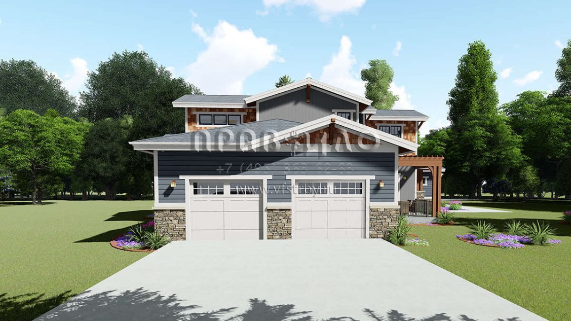Проект двухэтажного дома с гаражом на три и более машин в американском стиле S5-428 (425-00010)