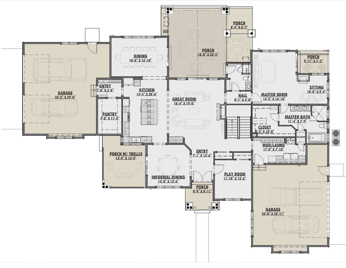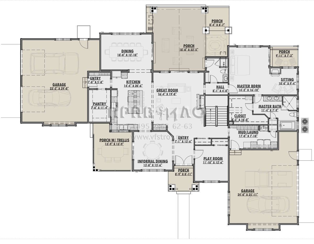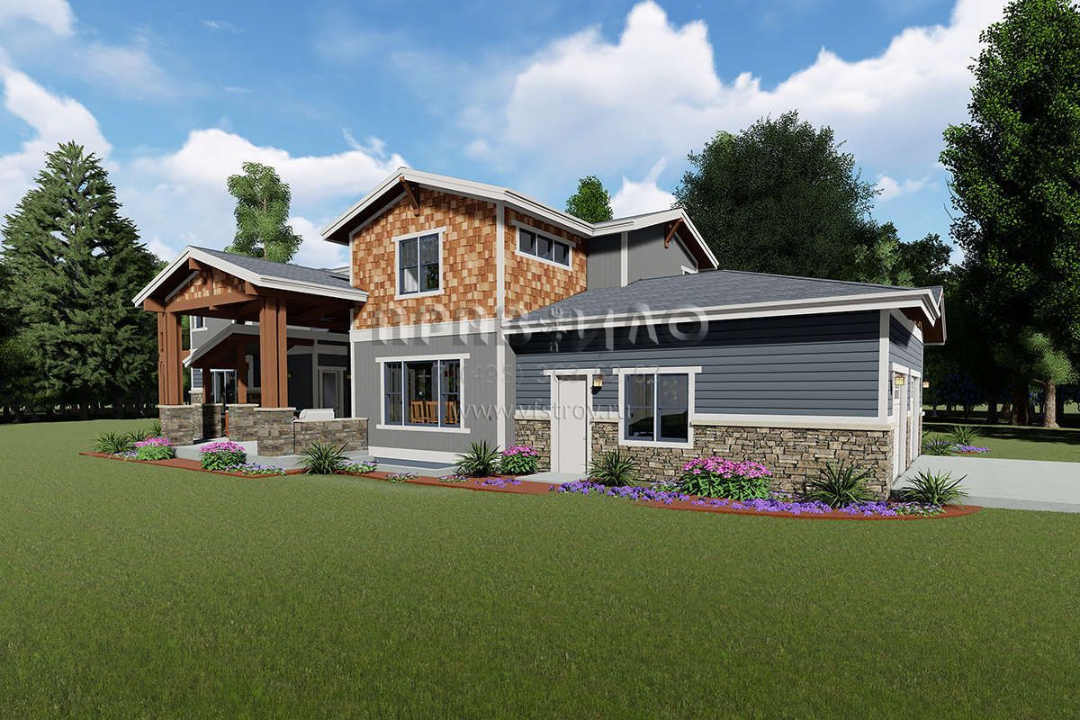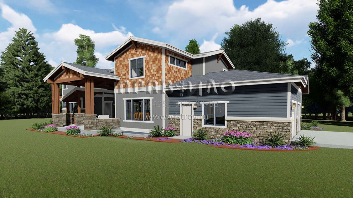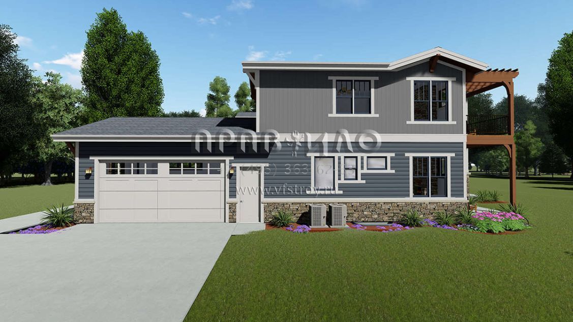 Проект двухэтажного дома с гаражом на три и более машин в американском стиле S5-428 (425-00010)