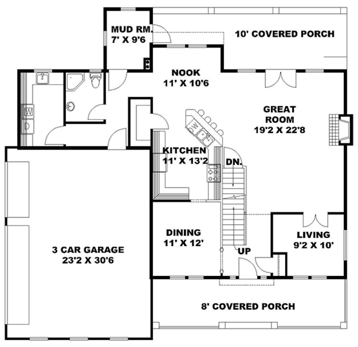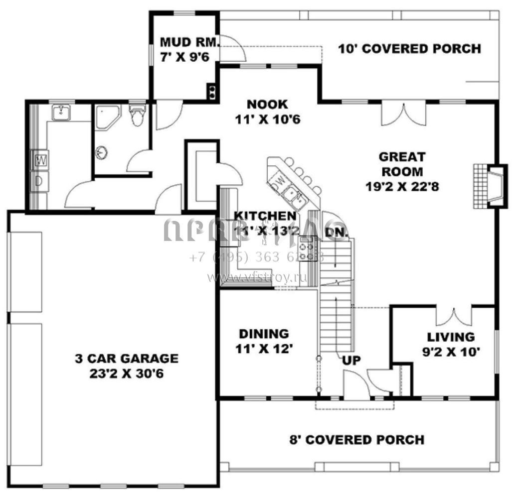 Проект двухэтажного дома с гаражом на три и более машин в стиле Ранчо S5-432 (039-00688)