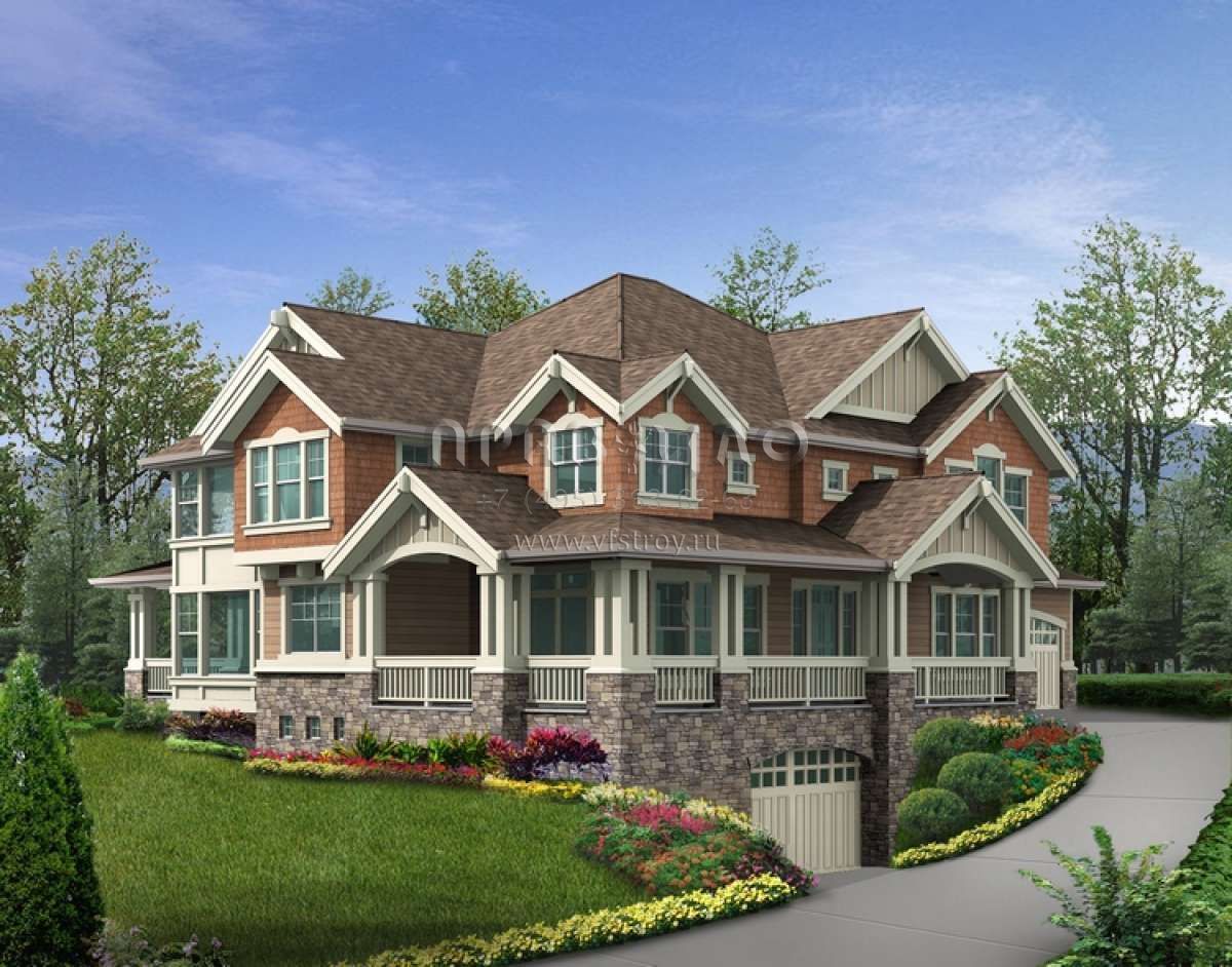 Проект двухэтажного дома с гаражом на три и более машин в американском стиле S5-432 (341-00269)
