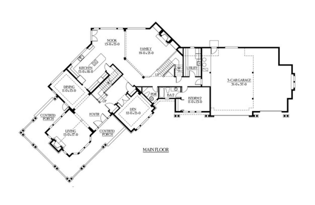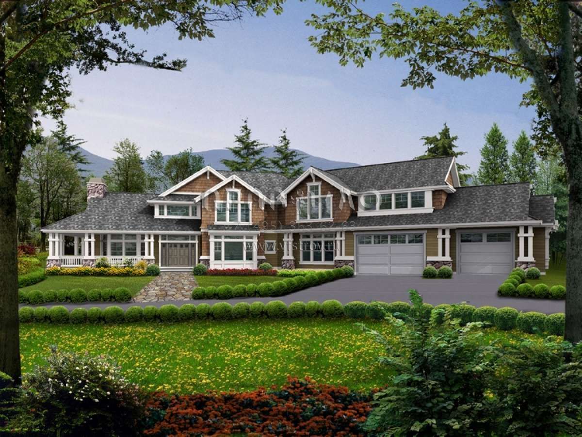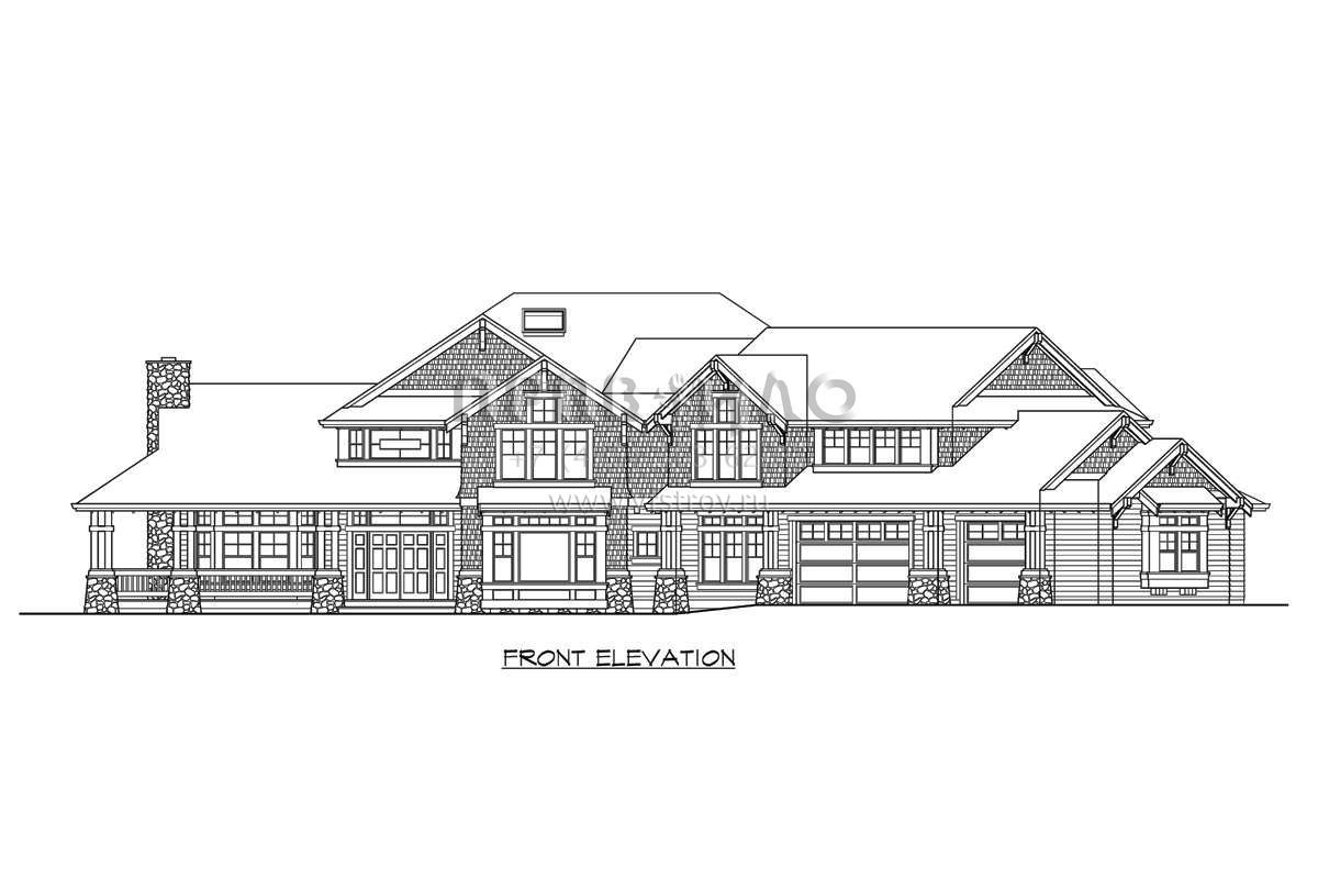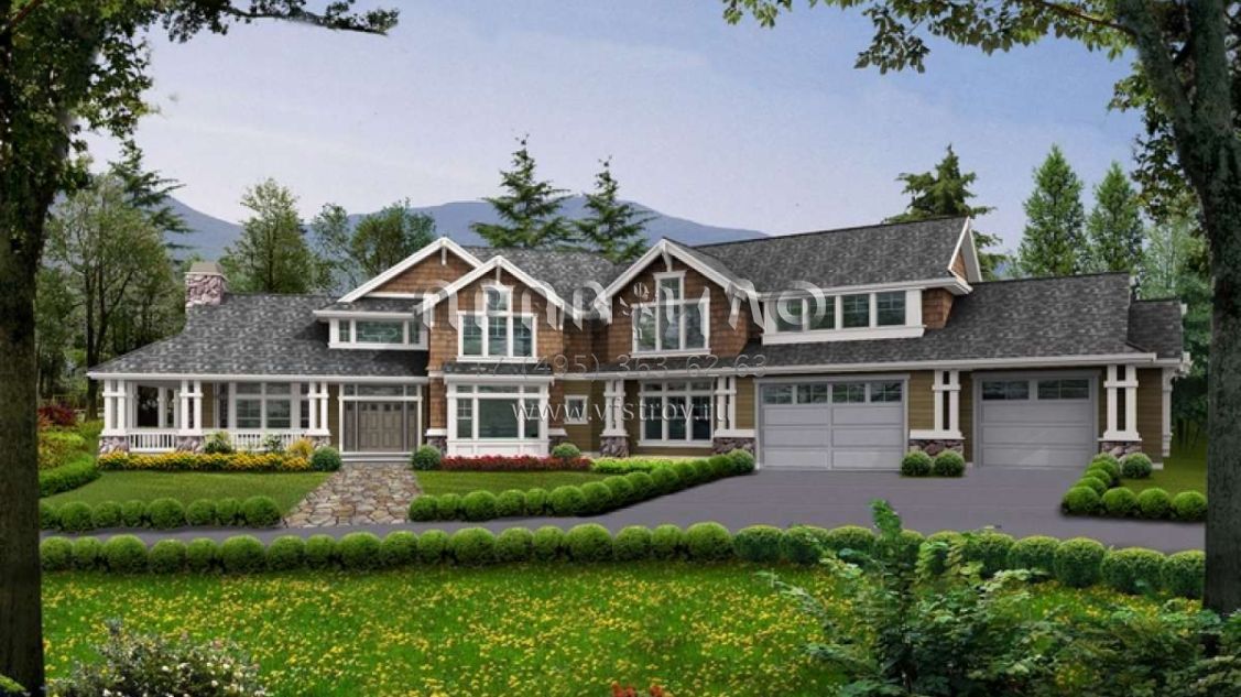 Проект двухэтажного дома с гаражом на три и более машин в стиле Ранчо S5-432 (341-00270)