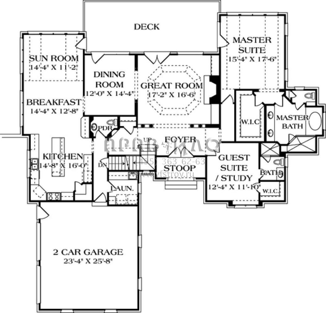 Проект двухэтажного дома с гаражом на две машины в стиле Ранчо S5-433 (3323-00279)