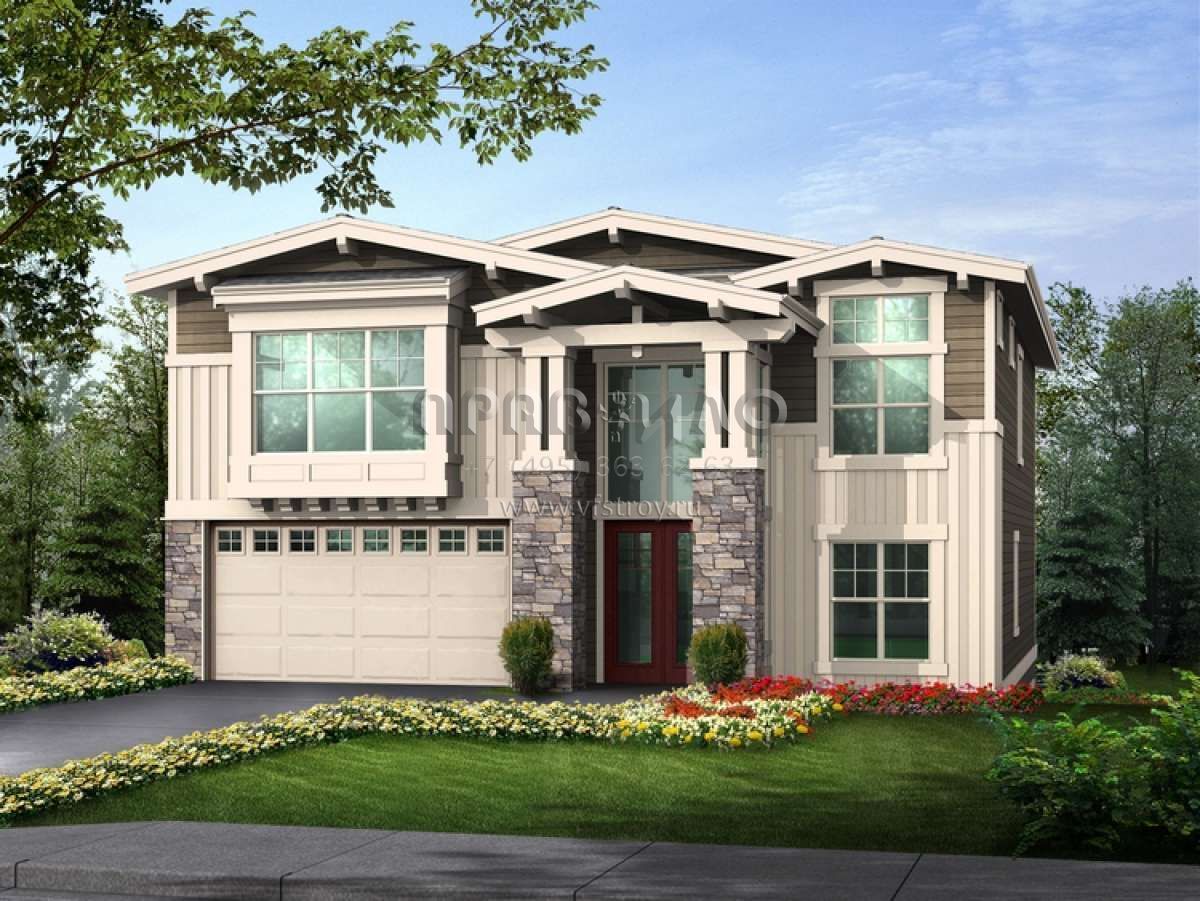 Проект двухэтажного дома с гаражом на три и более машин в американском стиле S5-434 (341-00230)