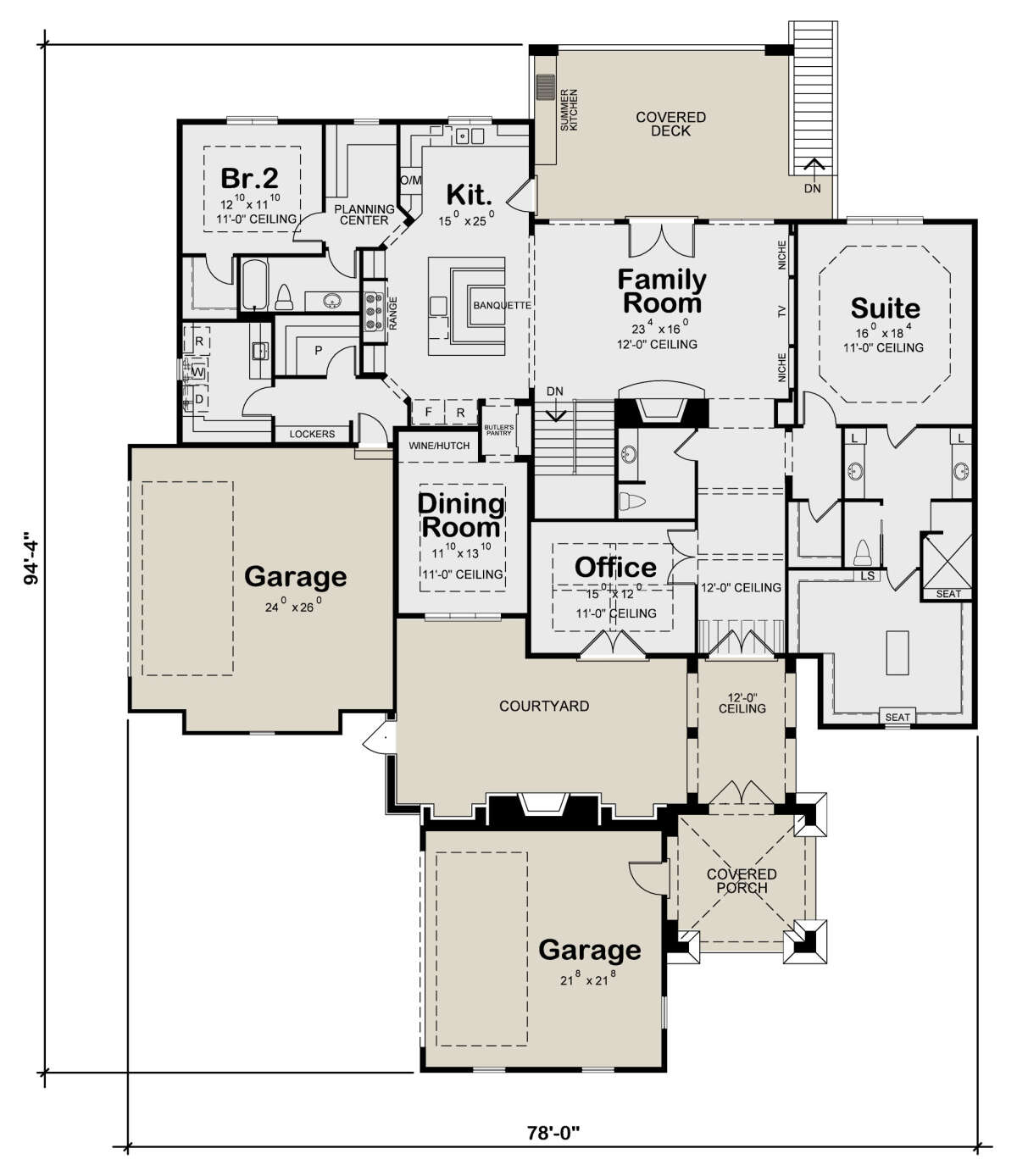 Проект одноэтажного дома с гаражом на три и более машин в английском стиле S5-435 (402-01723)