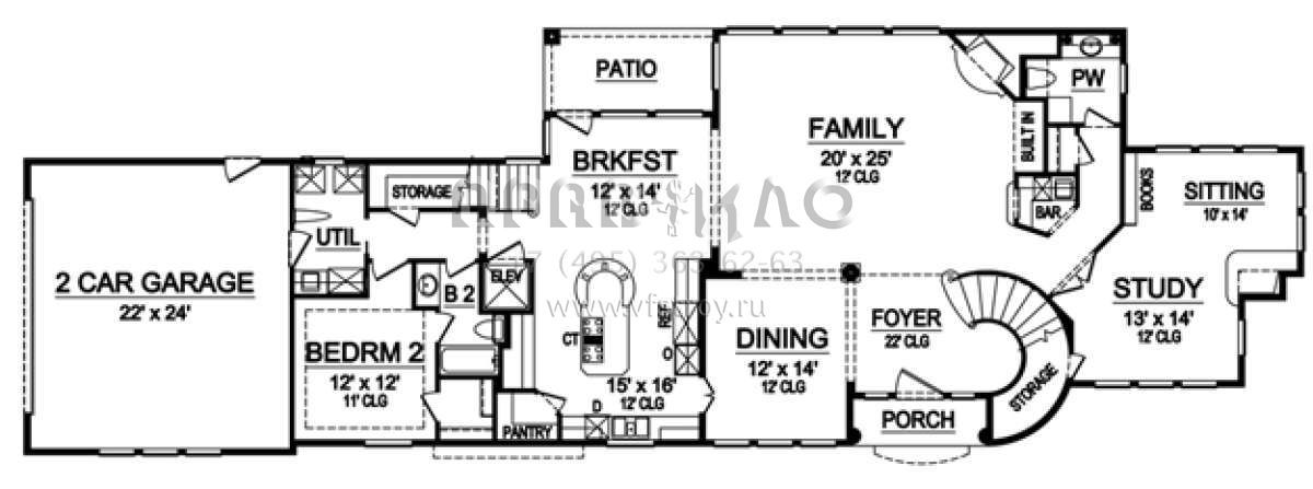 Поскольку этот проект разрабатывался иностранными архитекторами, для строительства дома требуется переработка проекта под действующие в России нормы. Данные визуализации проекта представлены для ознакомления с концепцией проекта. Проект разработан американским архитектурным бюро и представлен America's Best House Plans.