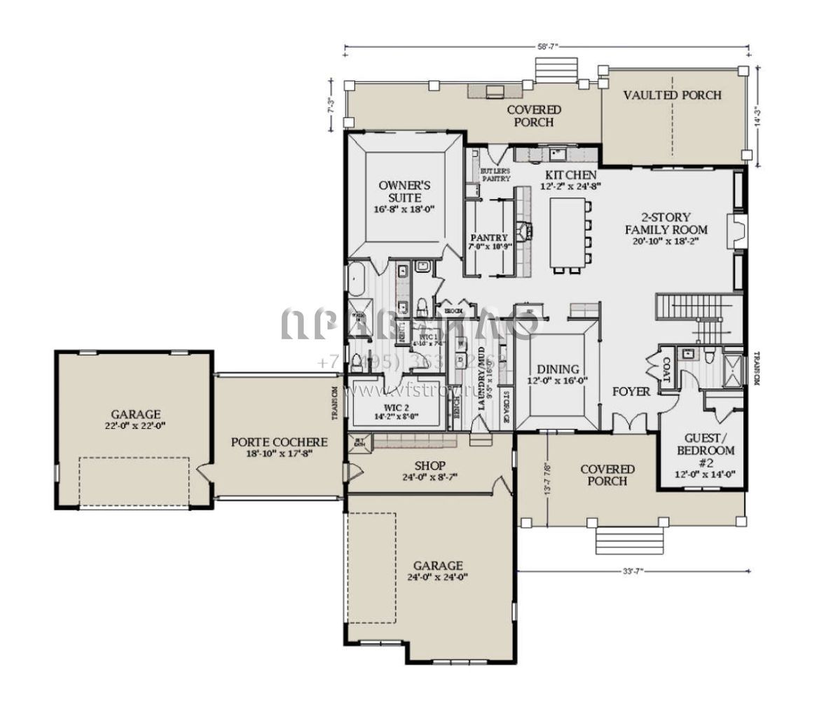 Проект двухэтажного дома с гаражом на три и более машин в современном стиле S5-435 (6849-00154)