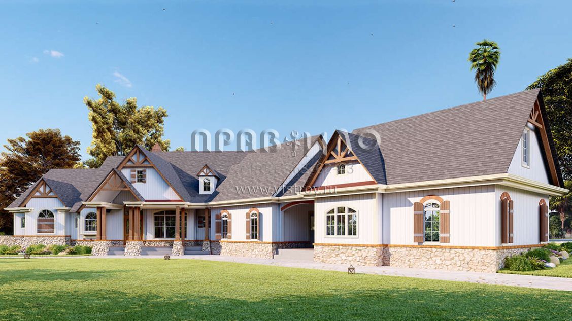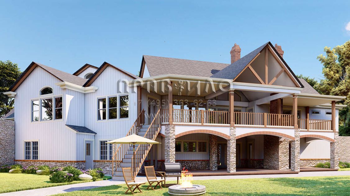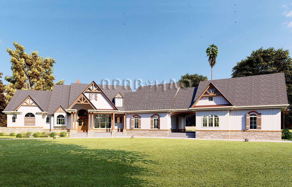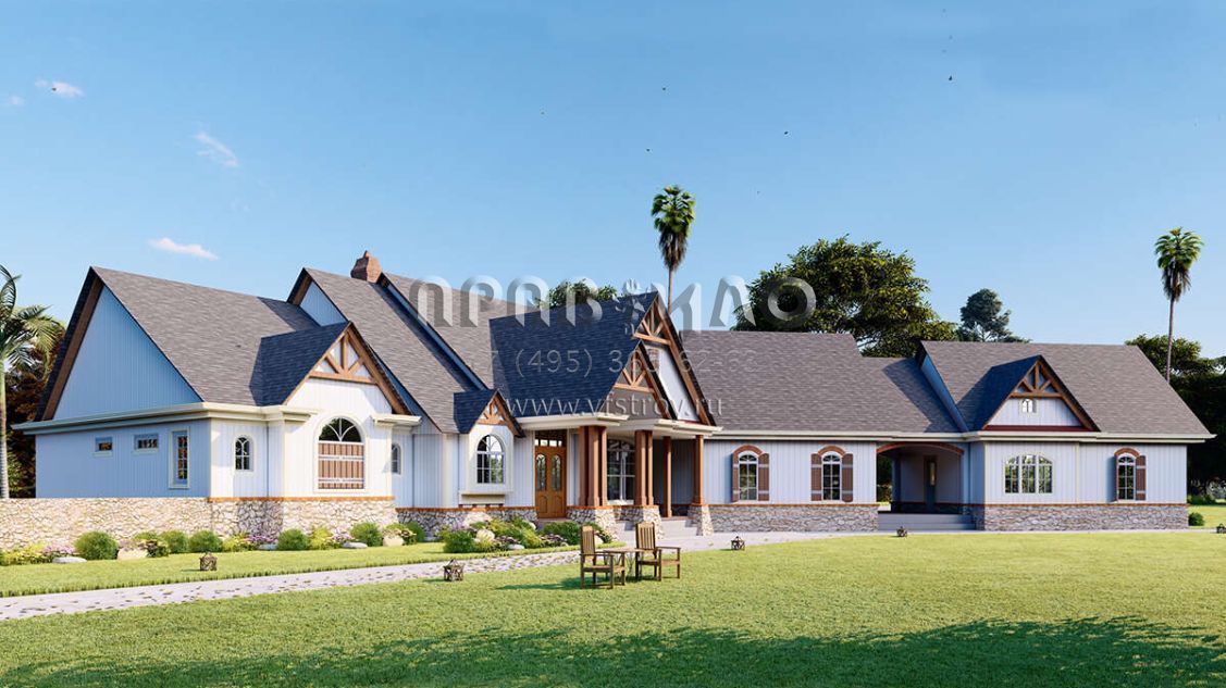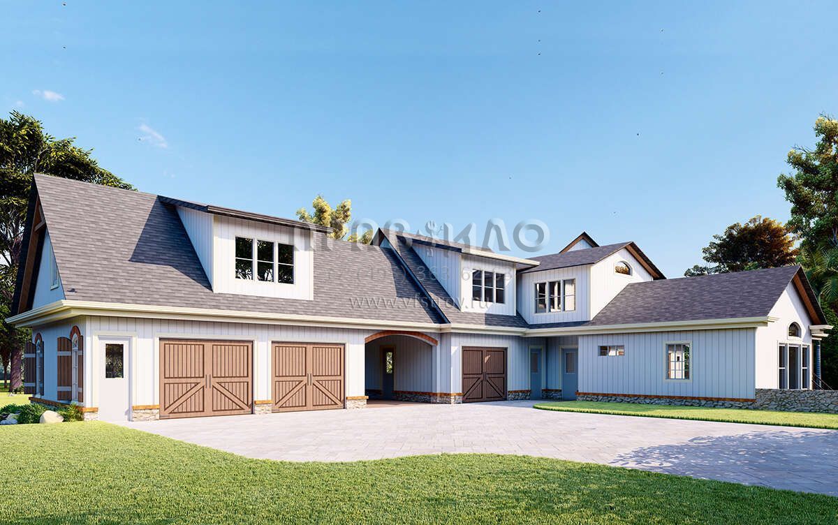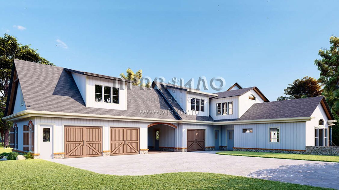 Проект двухэтажного дома с гаражом на три и более машин в американском стиле S5-435 (699-00288)