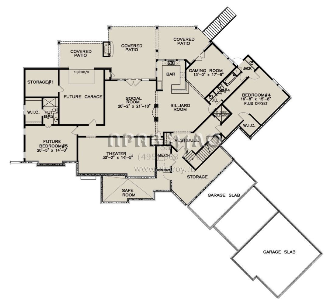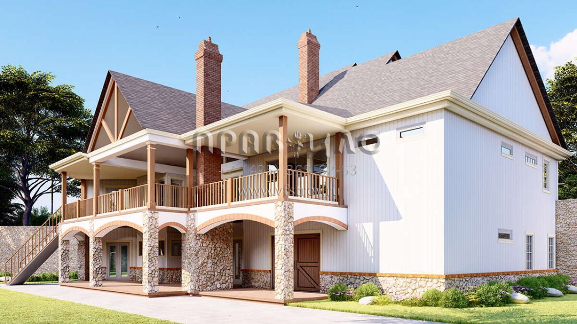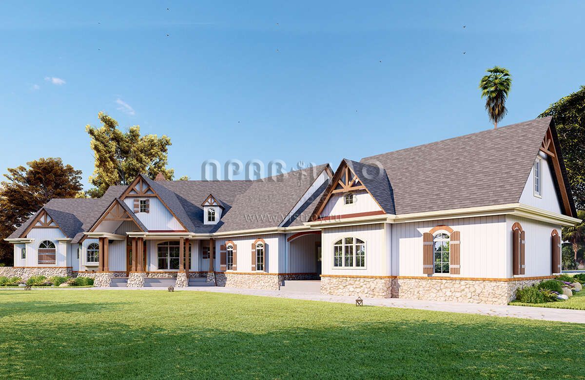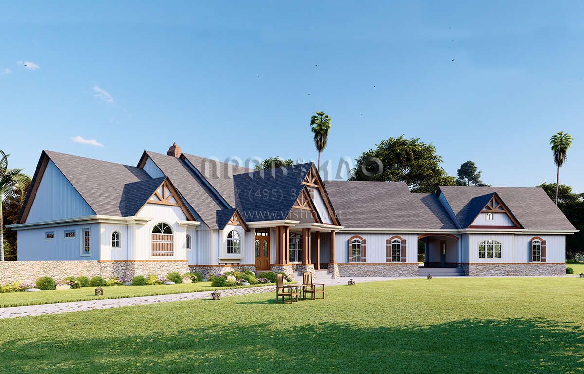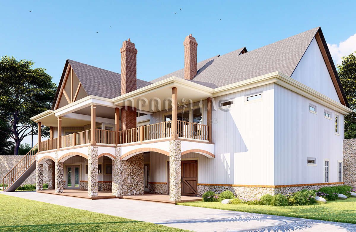 Проект двухэтажного дома с гаражом на три и более машин в американском стиле S5-435 (699-00288)