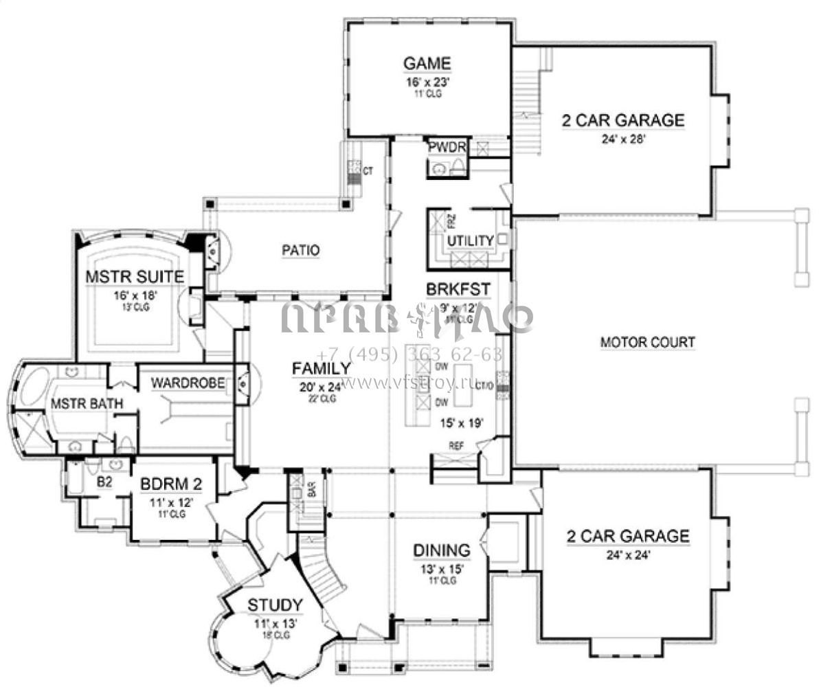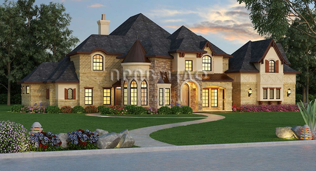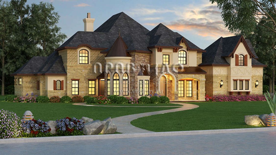 Проект двухэтажного дома с гаражом на три и более машин в английском стиле S5-436 (5445-00252)