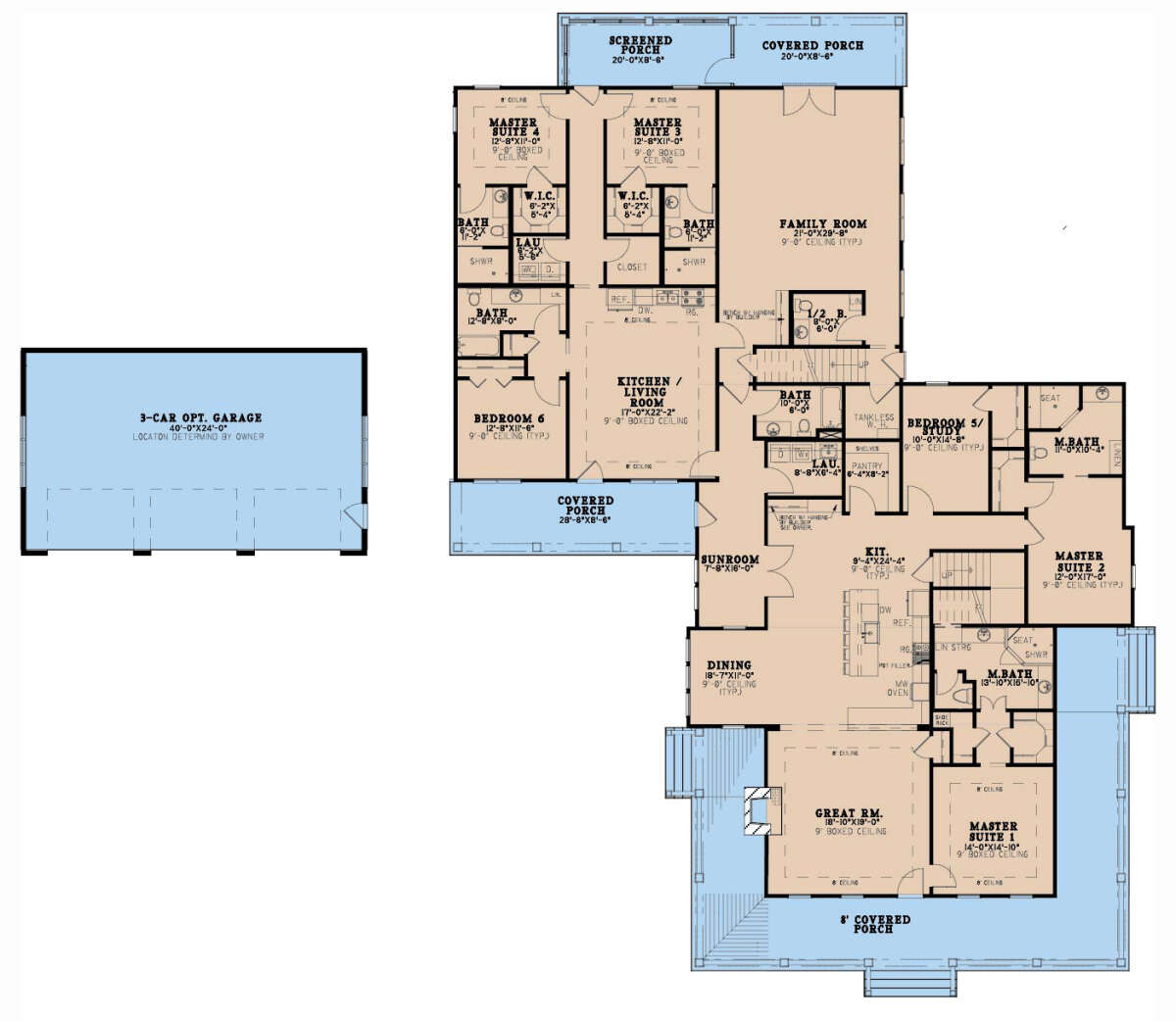 Проект одноэтажного дома с гаражом на три и более машин в стиле Ранчо S5-436 (8318-00248)