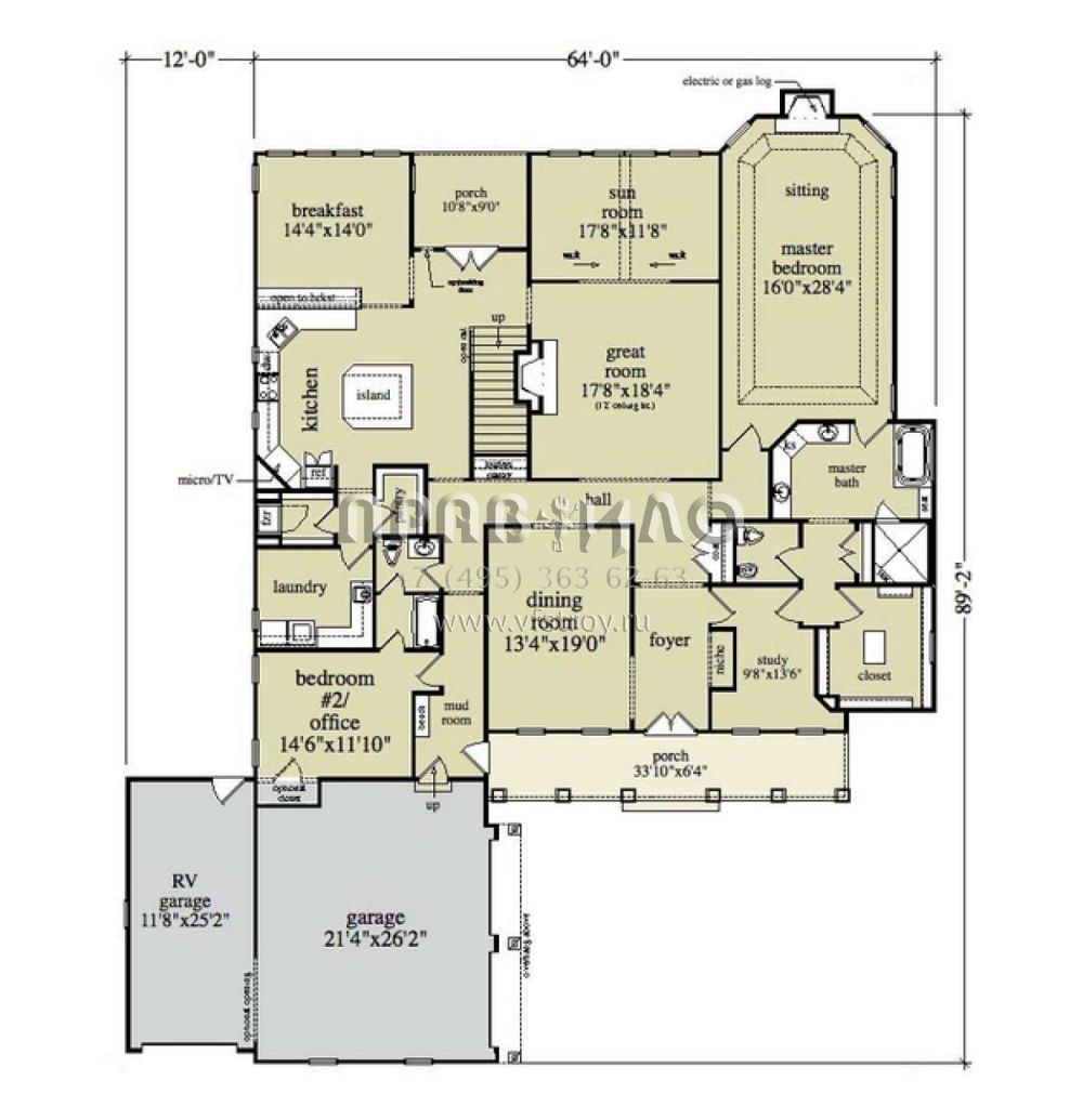 Проект двухэтажного дома с гаражом на три и более машин в стиле Ранчо S5-438 (957-00027)