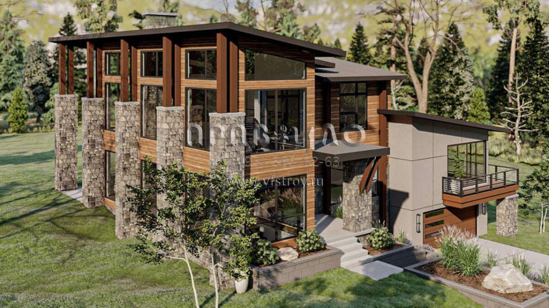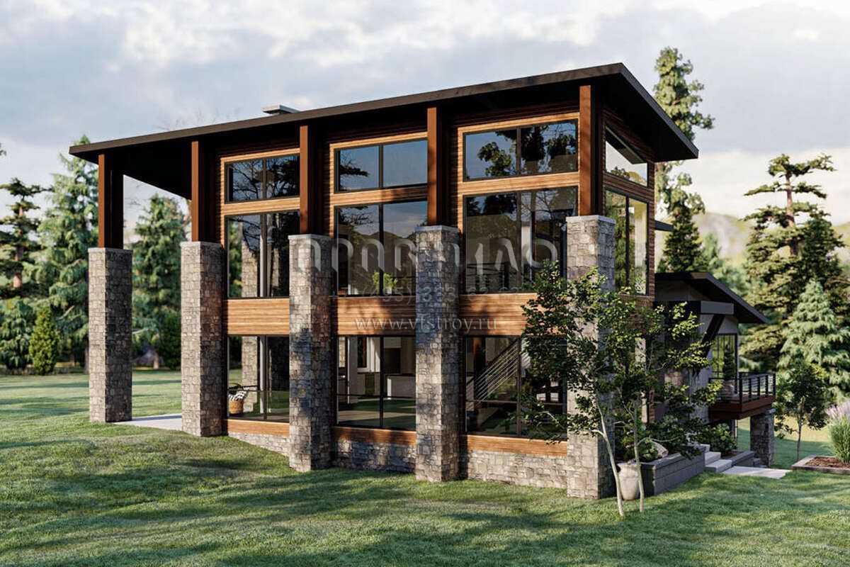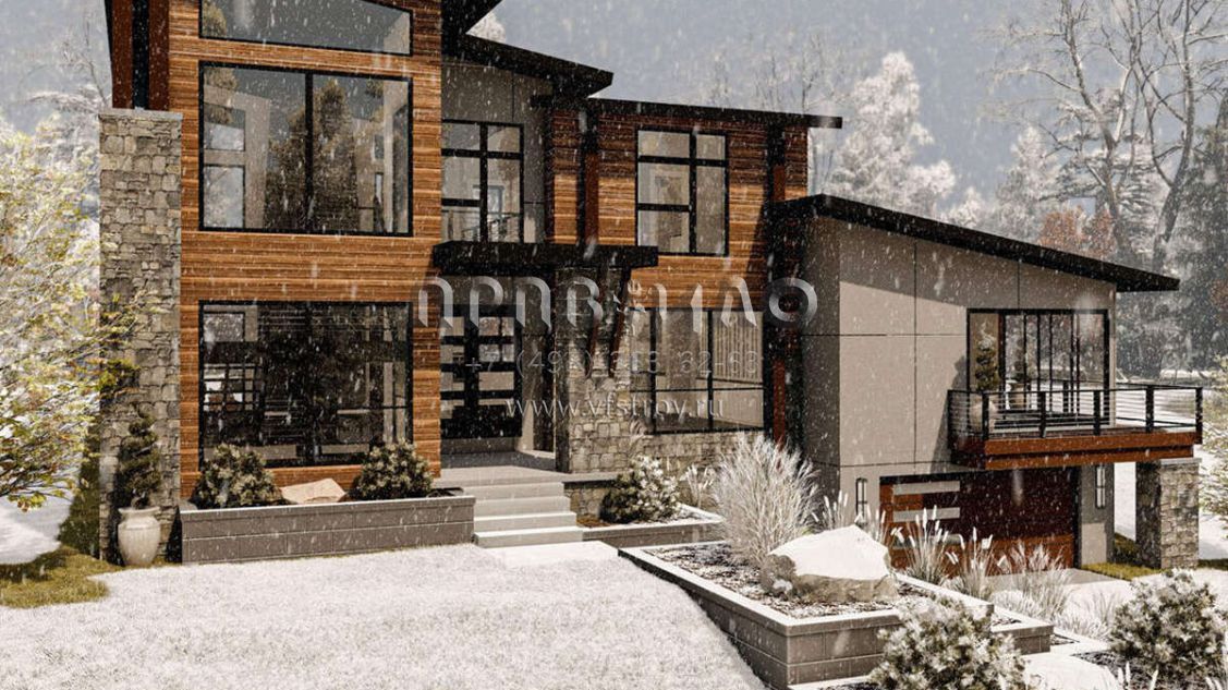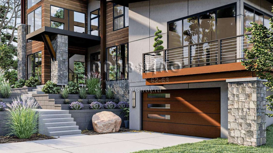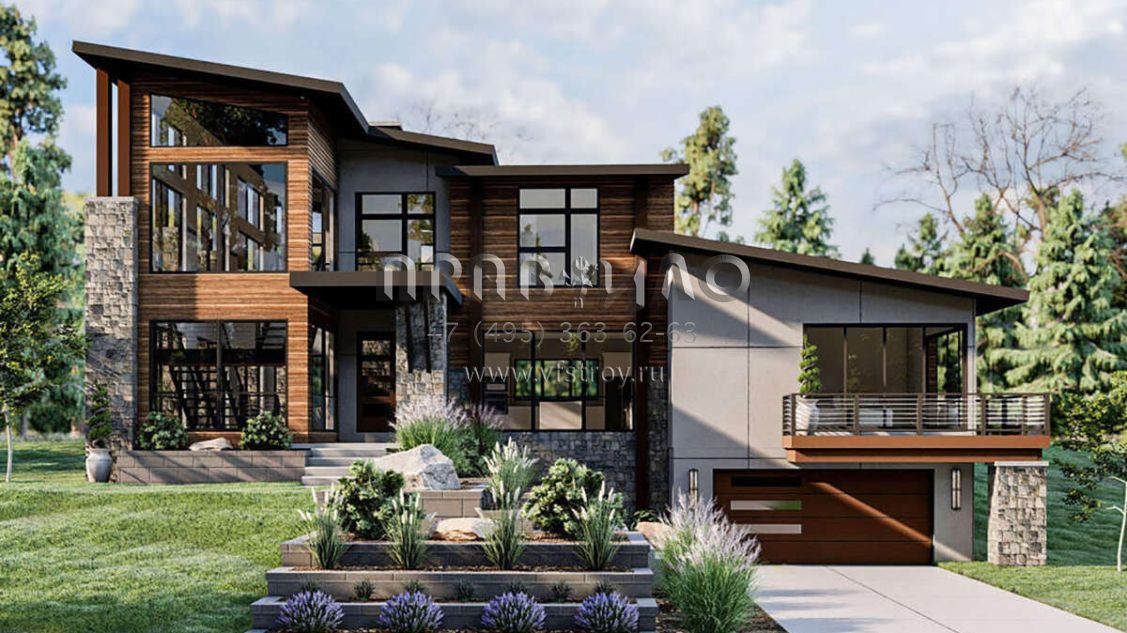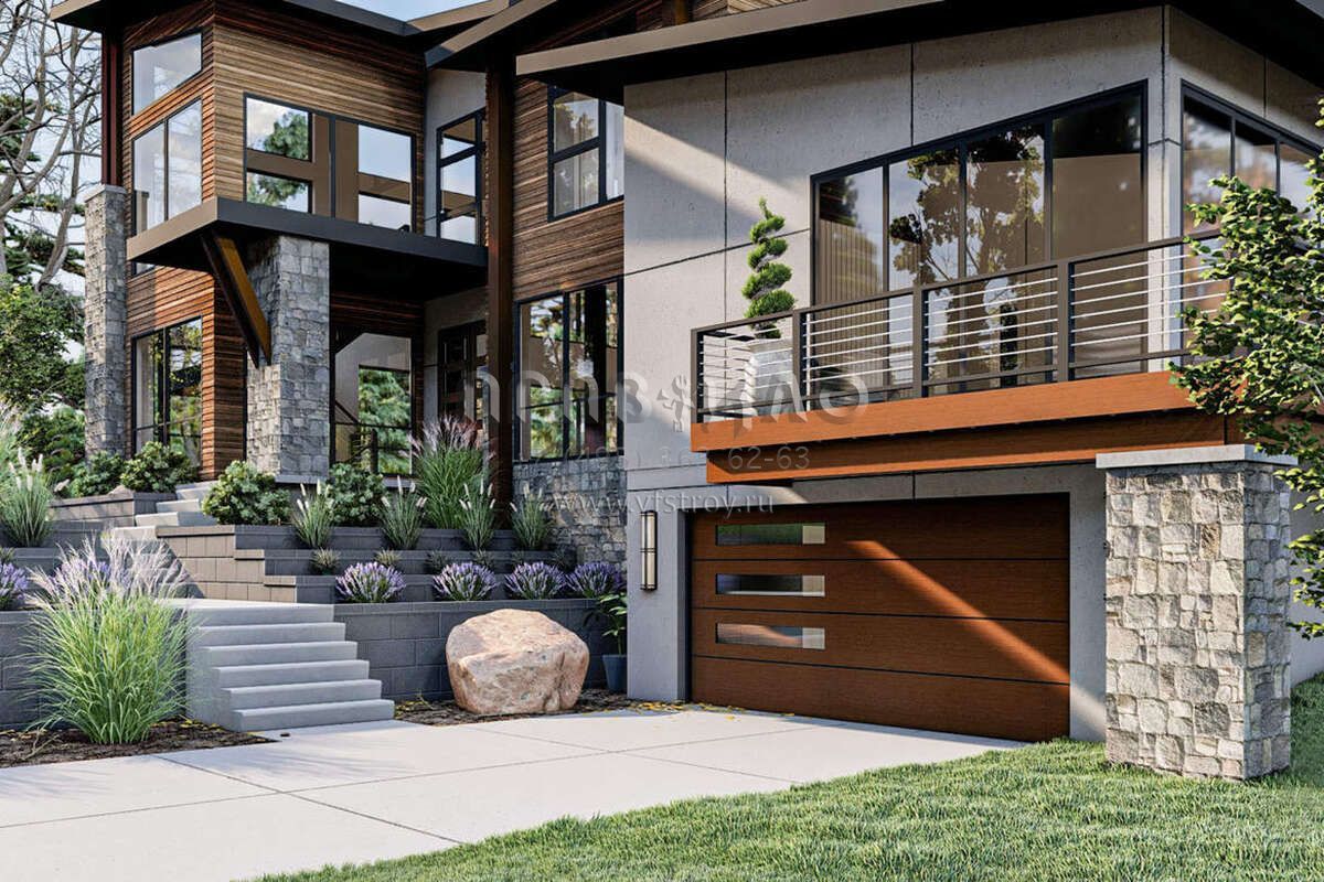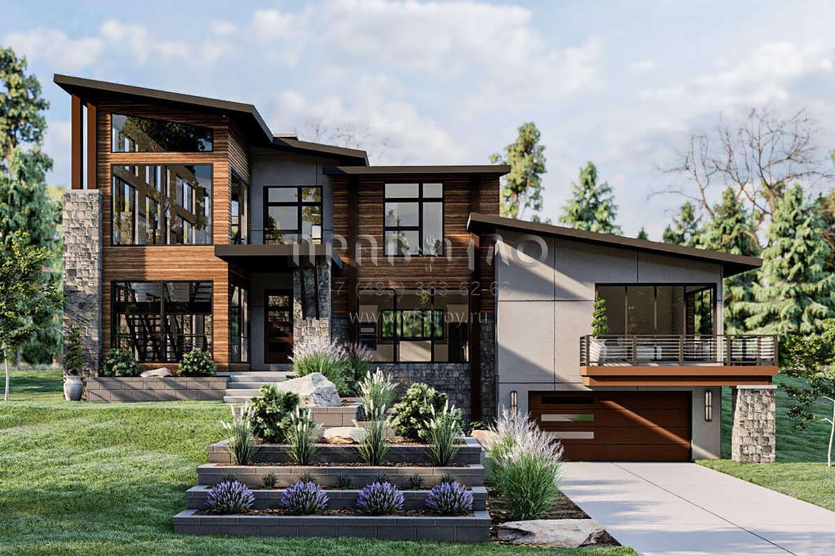 Проект дома на склоне с панорамным остеклением и гаражом на две машины S5-438 (963-00485)