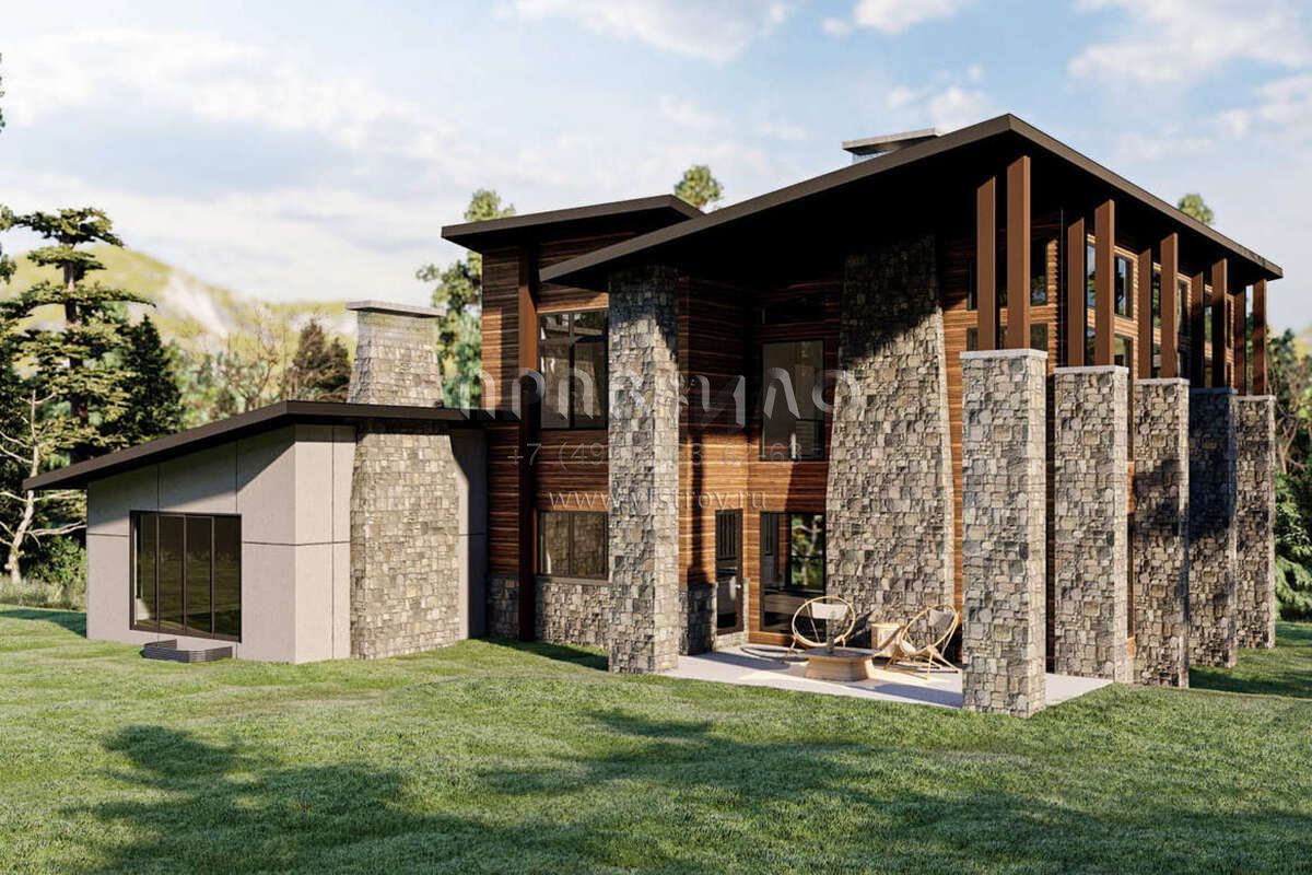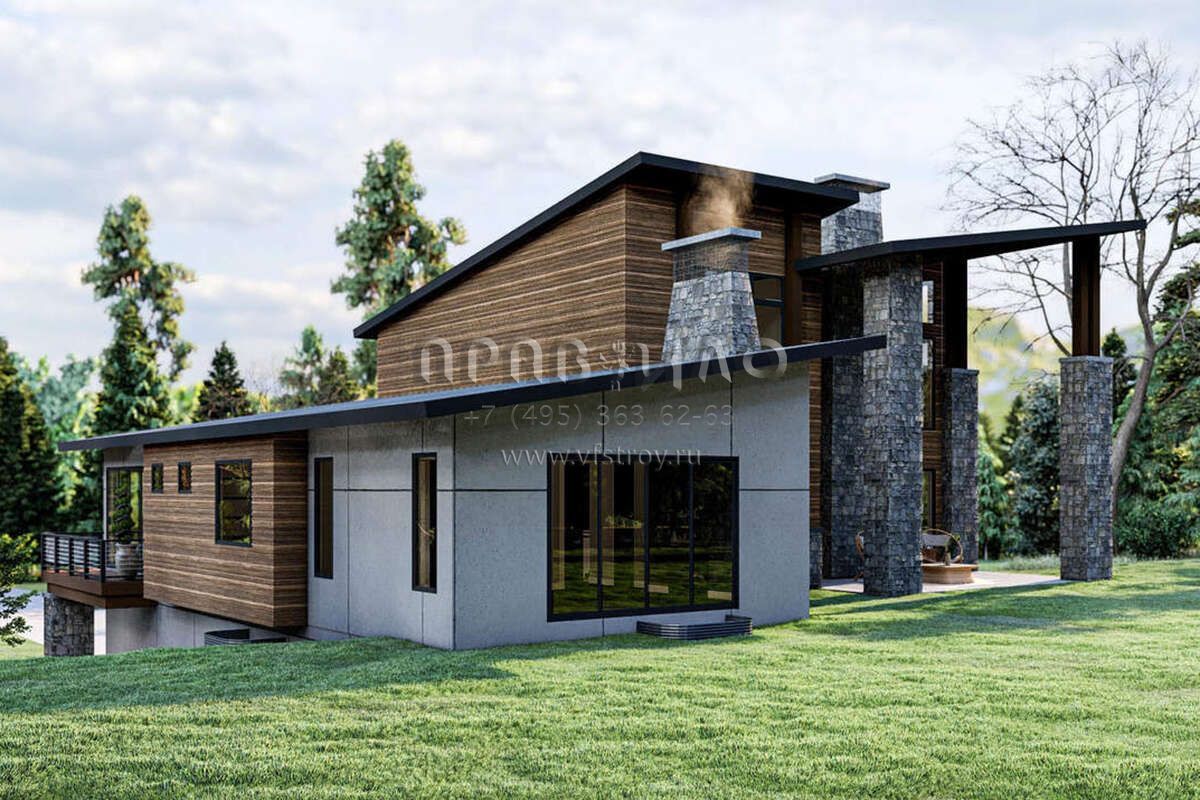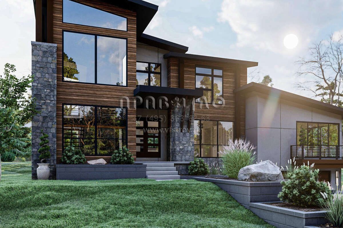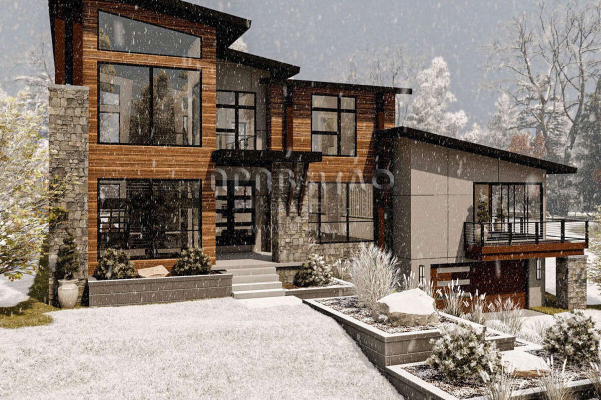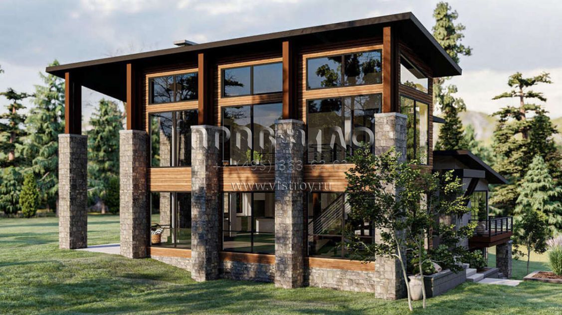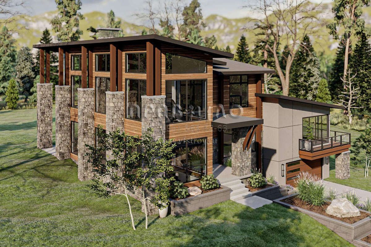 Проект дома на склоне с панорамным остеклением и гаражом на две машины S5-438 (963-00485)