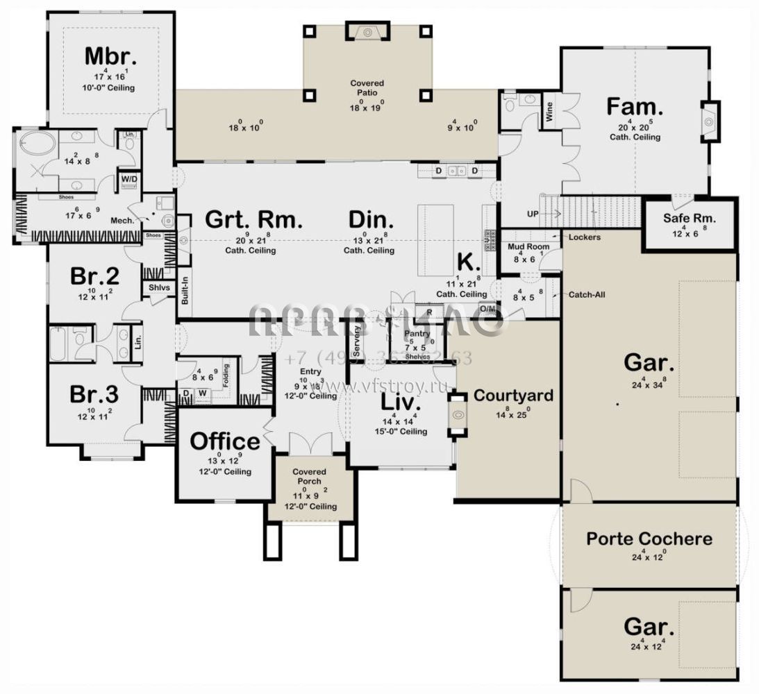 Поскольку этот проект разрабатывался иностранными архитекторами, для строительства дома требуется переработка проекта под действующие в России нормы. Данные визуализации проекта представлены для ознакомления с концепцией проекта. Проект разработан американским архитектурным бюро и представлен America's Best House Plans.