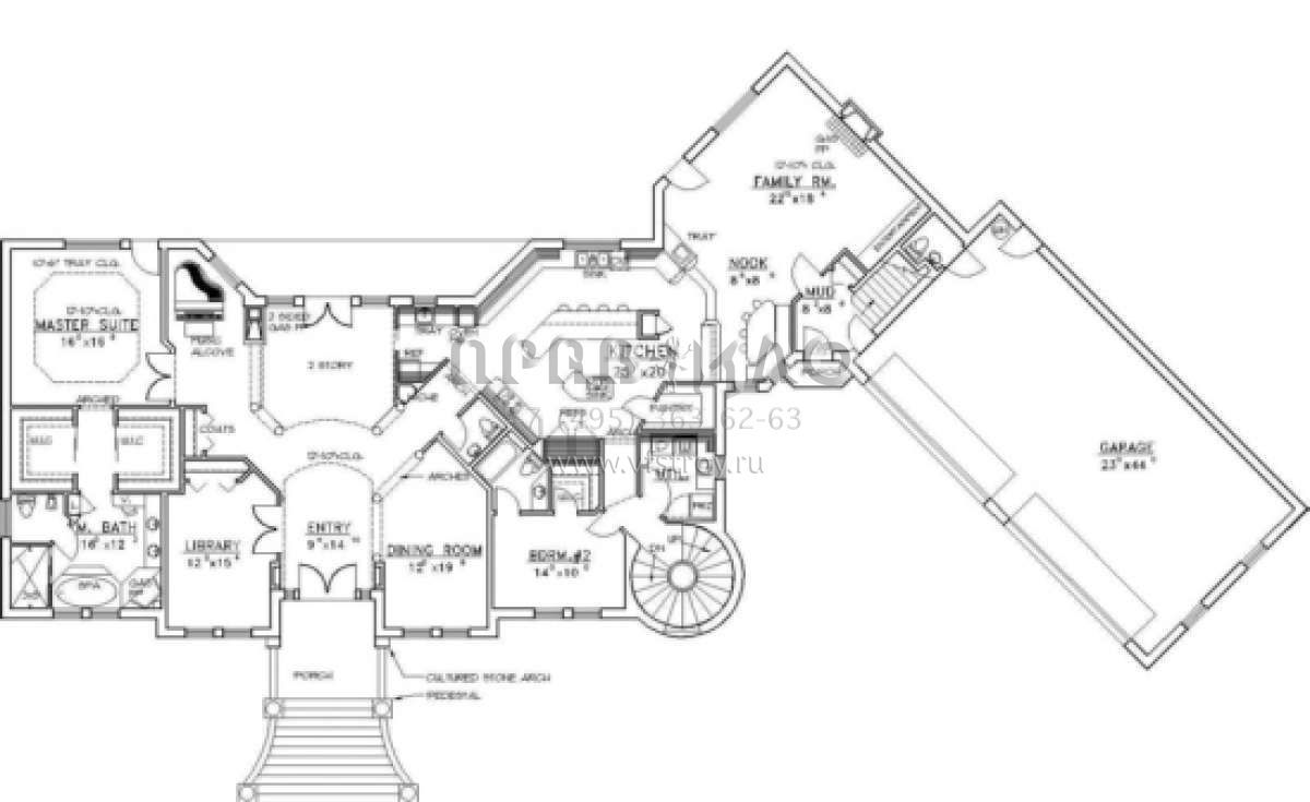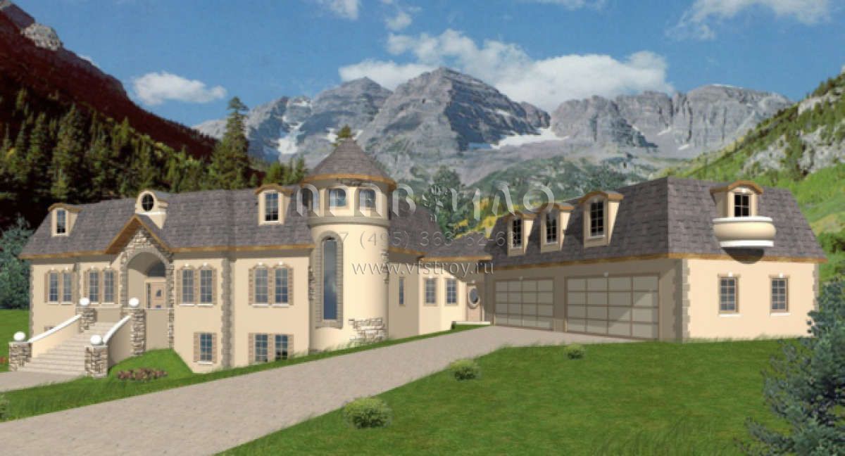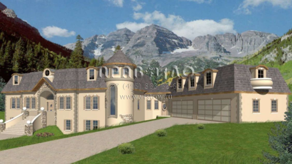 Проект двухэтажного дома с гаражом на три и более машин в стиле Ранчо S5-439 (039-00098)